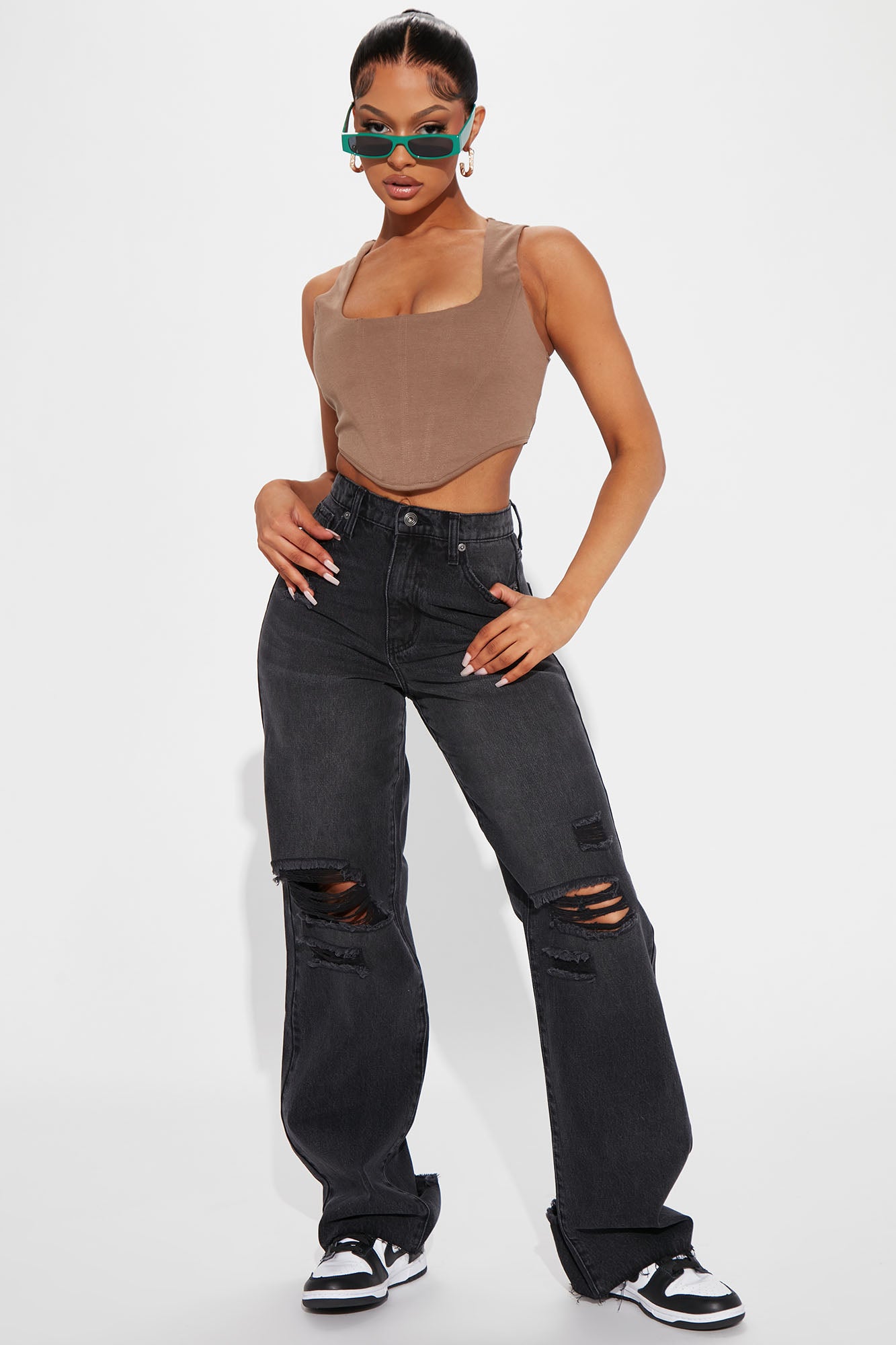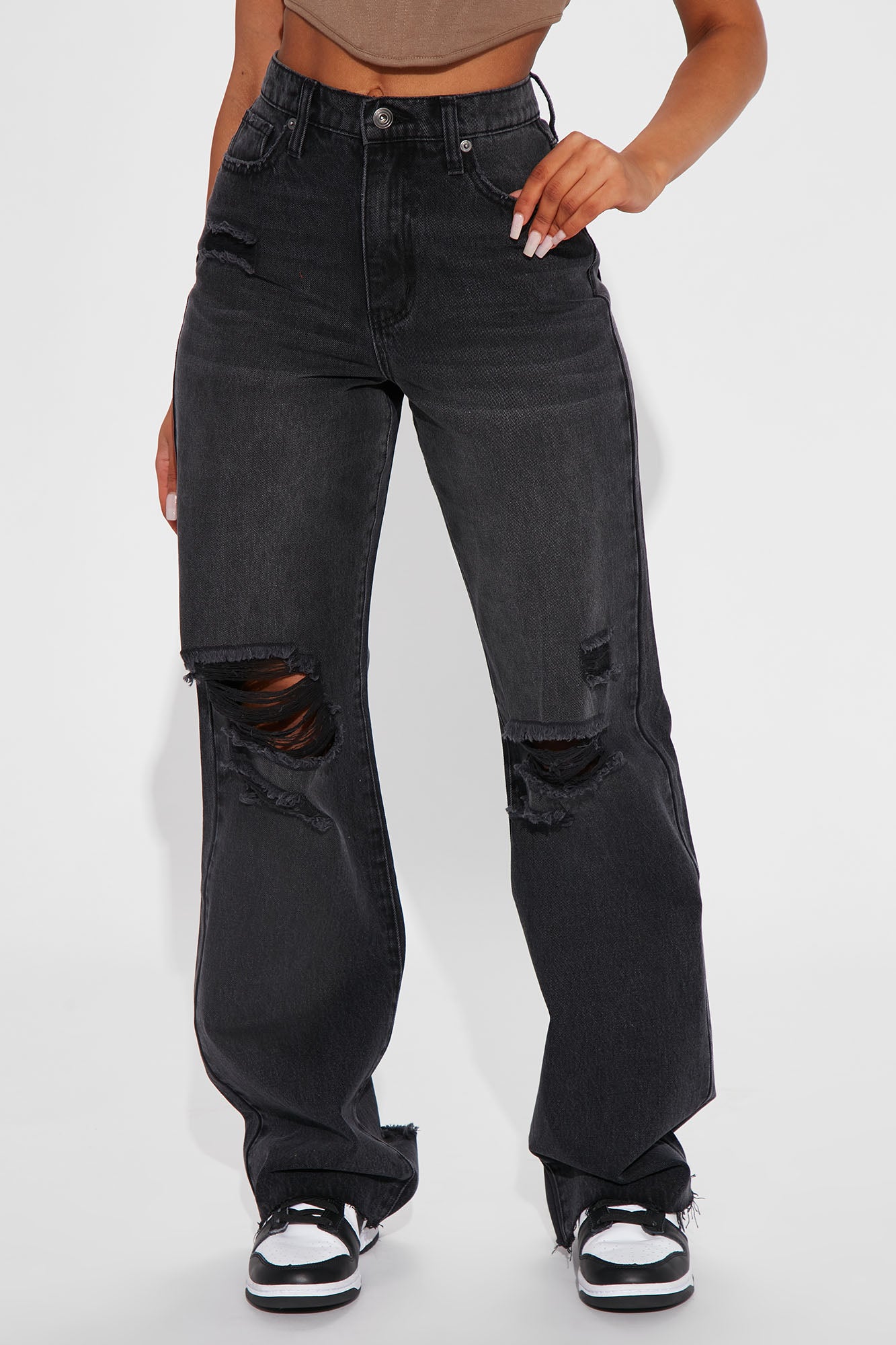 90s Loose Ripped Straight Leg Jeans - Black Wash