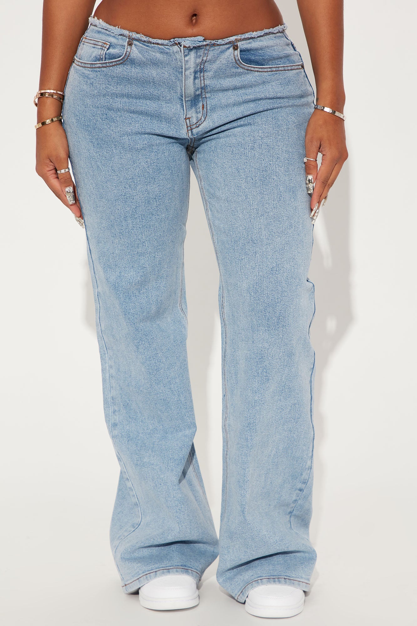 Again And Again Cut Off Waistband Jeans - Medium Blue Wash