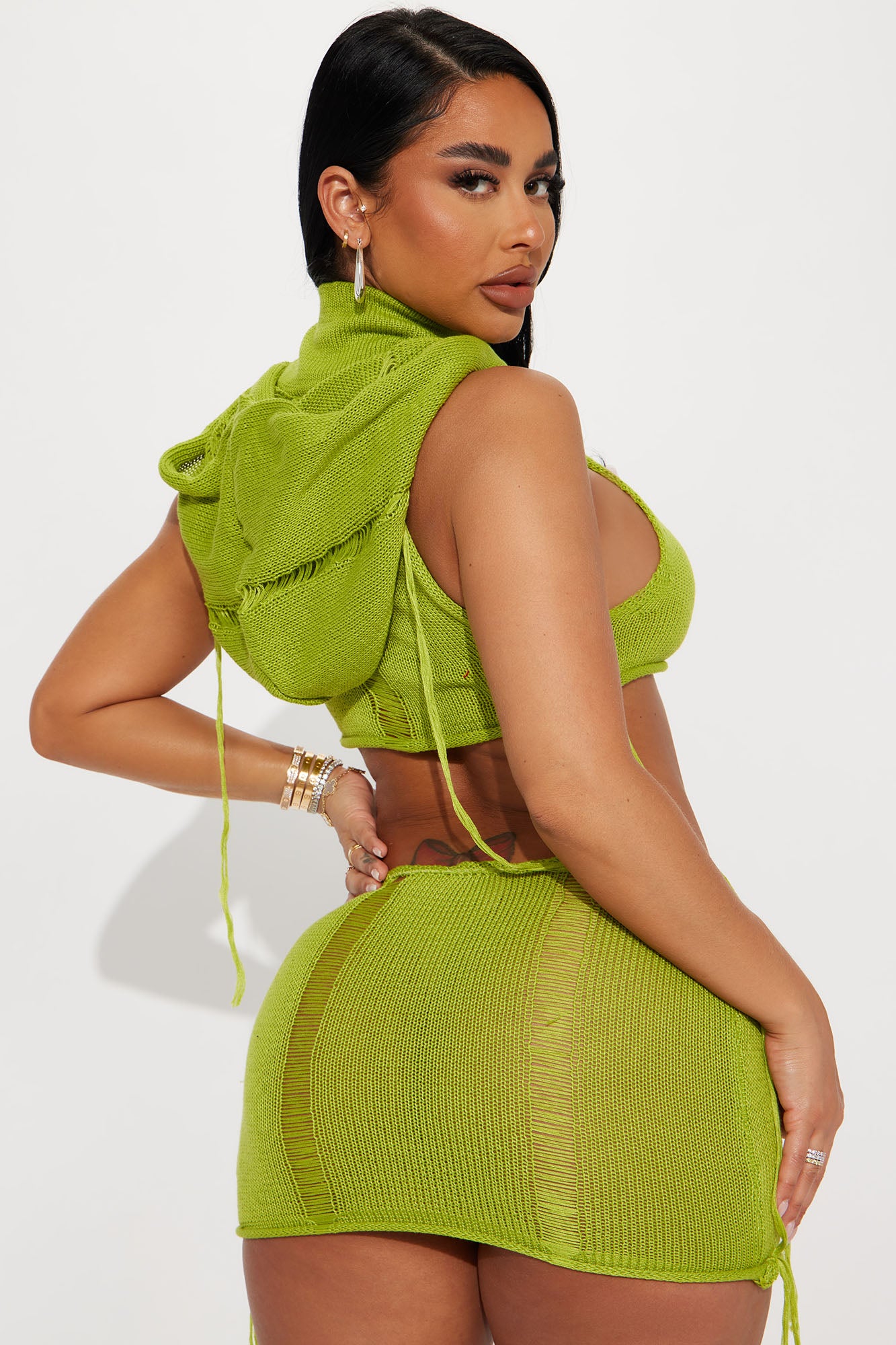 Take Away Distressed Skirt Set - Olive