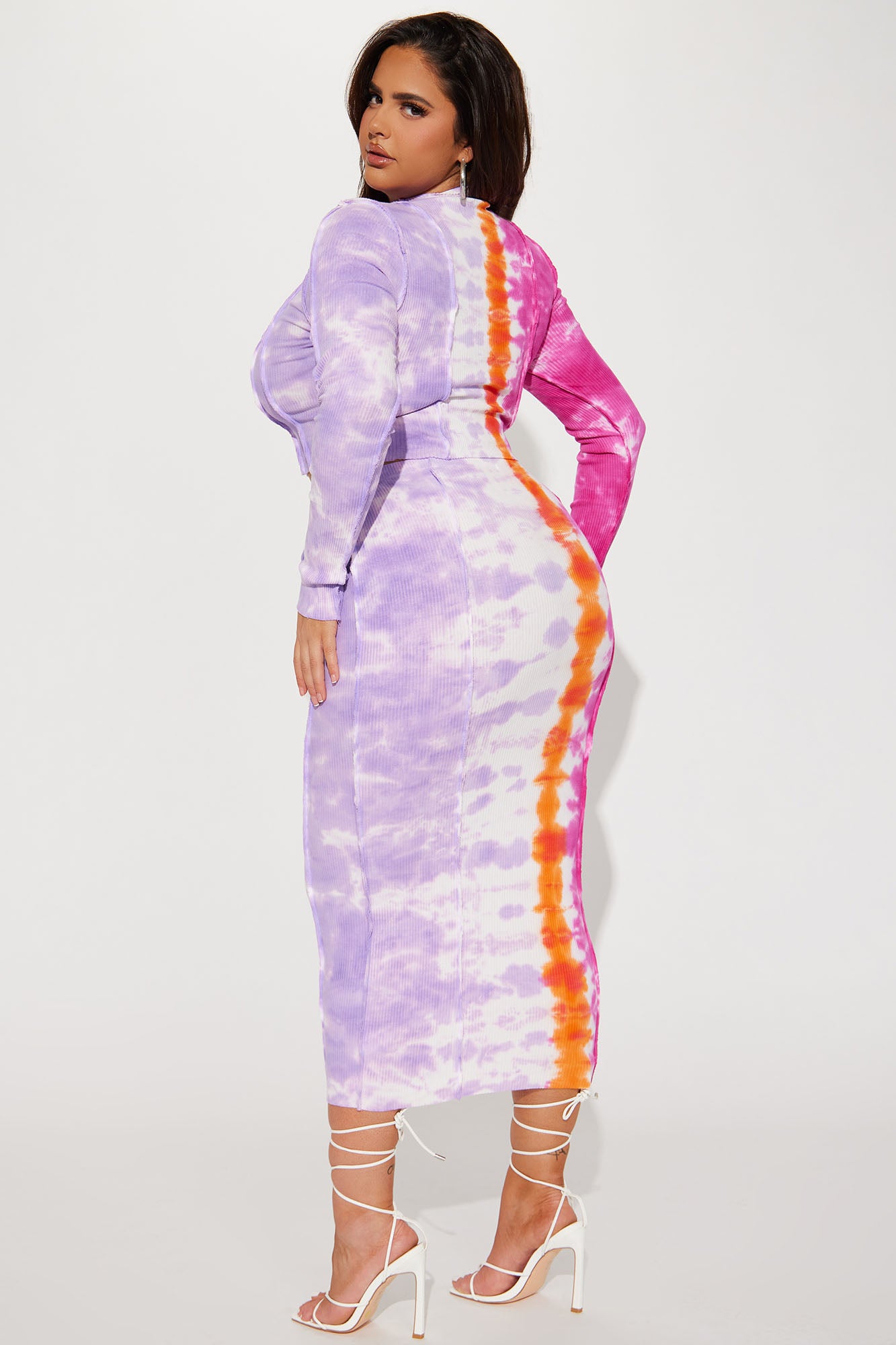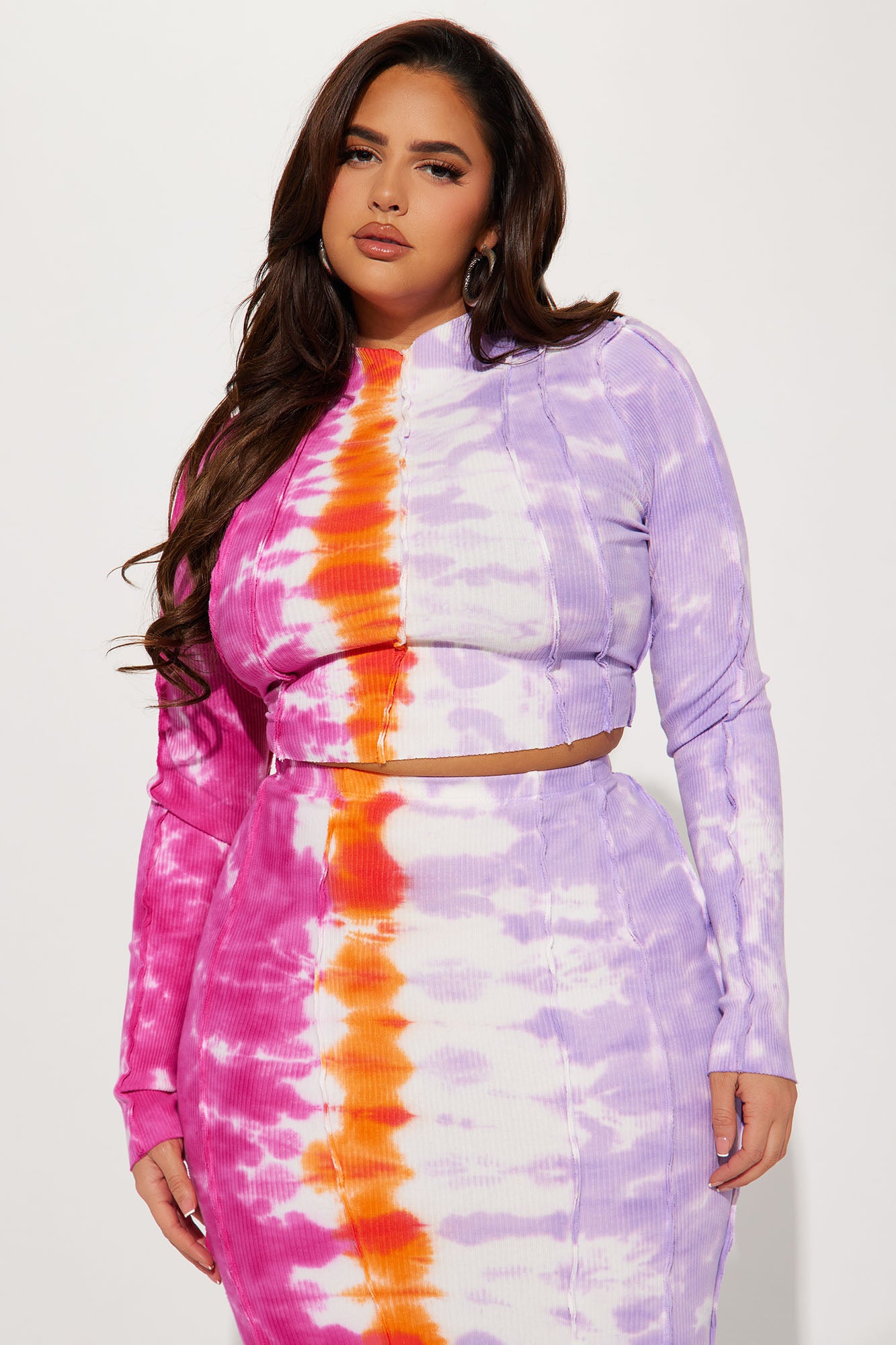 Talk To Me Tie Dye Midi Skirt Set - Hot Pink/combo