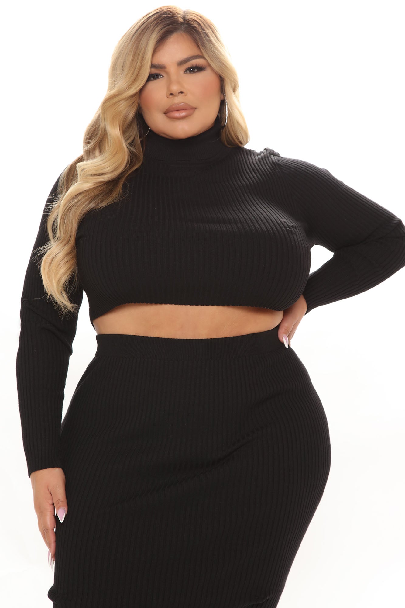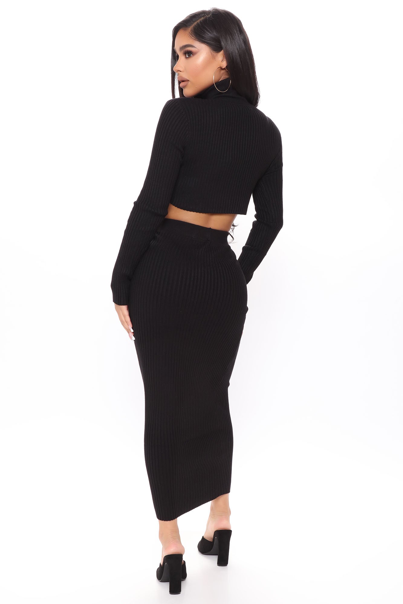 Up To No Good Ribbed Midi Skirt Set - Black