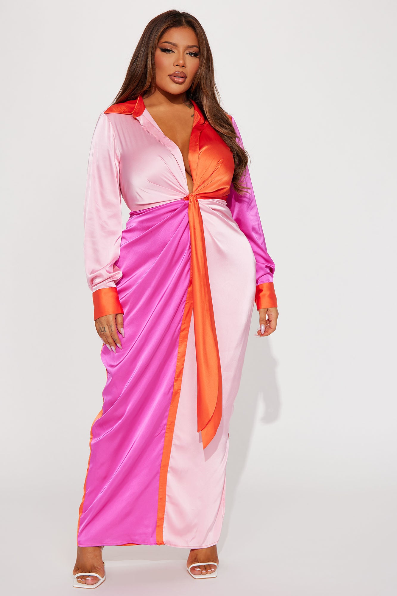 Beauty Secrets Satin Maxi Dress - Pink/combo