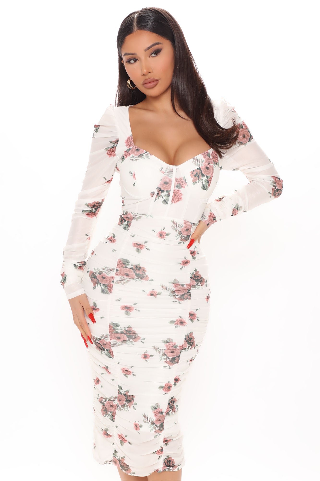 Bring Me Flowers Mesh Midi Dress - White