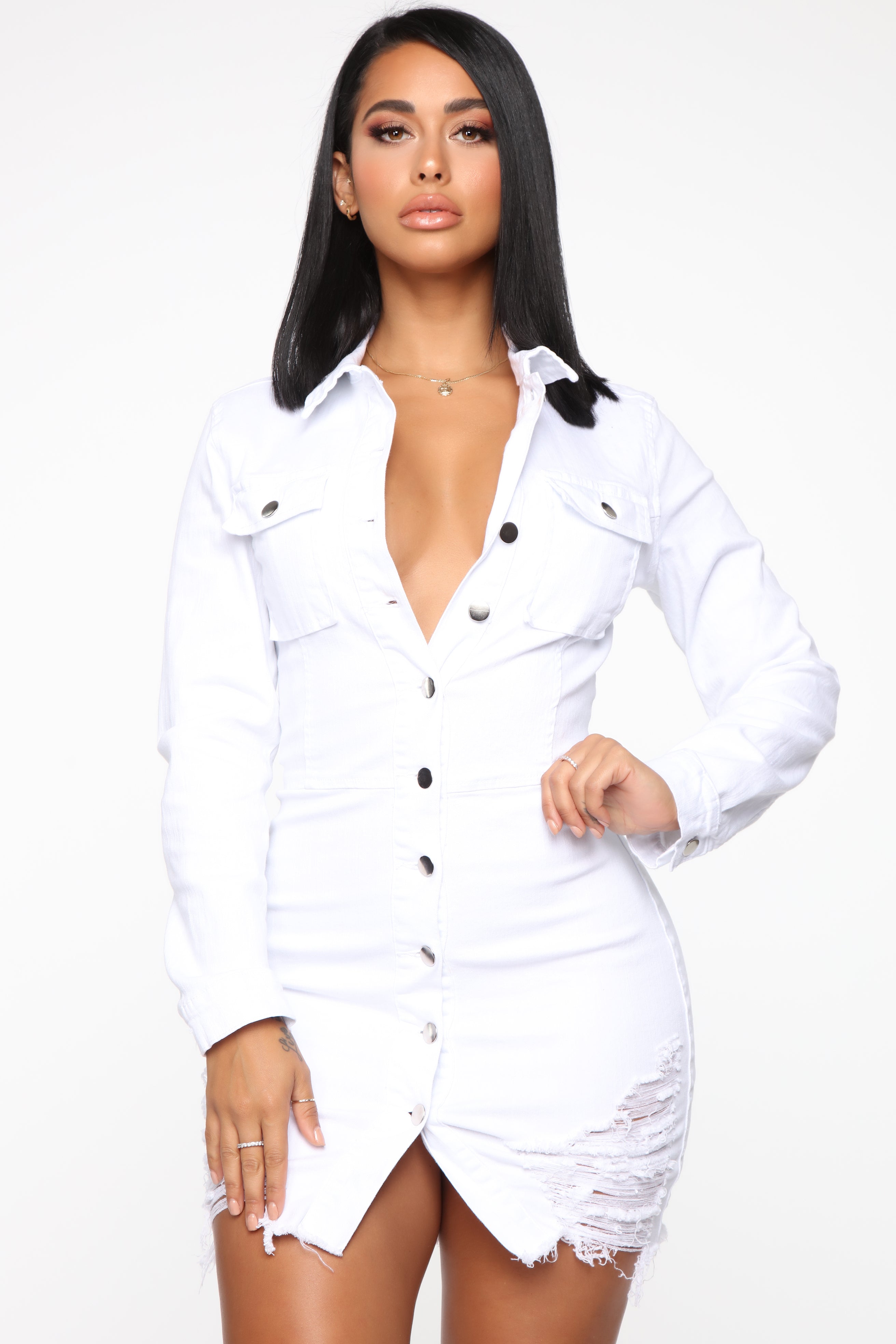 Editorial Love Distressed Denim Dress - White