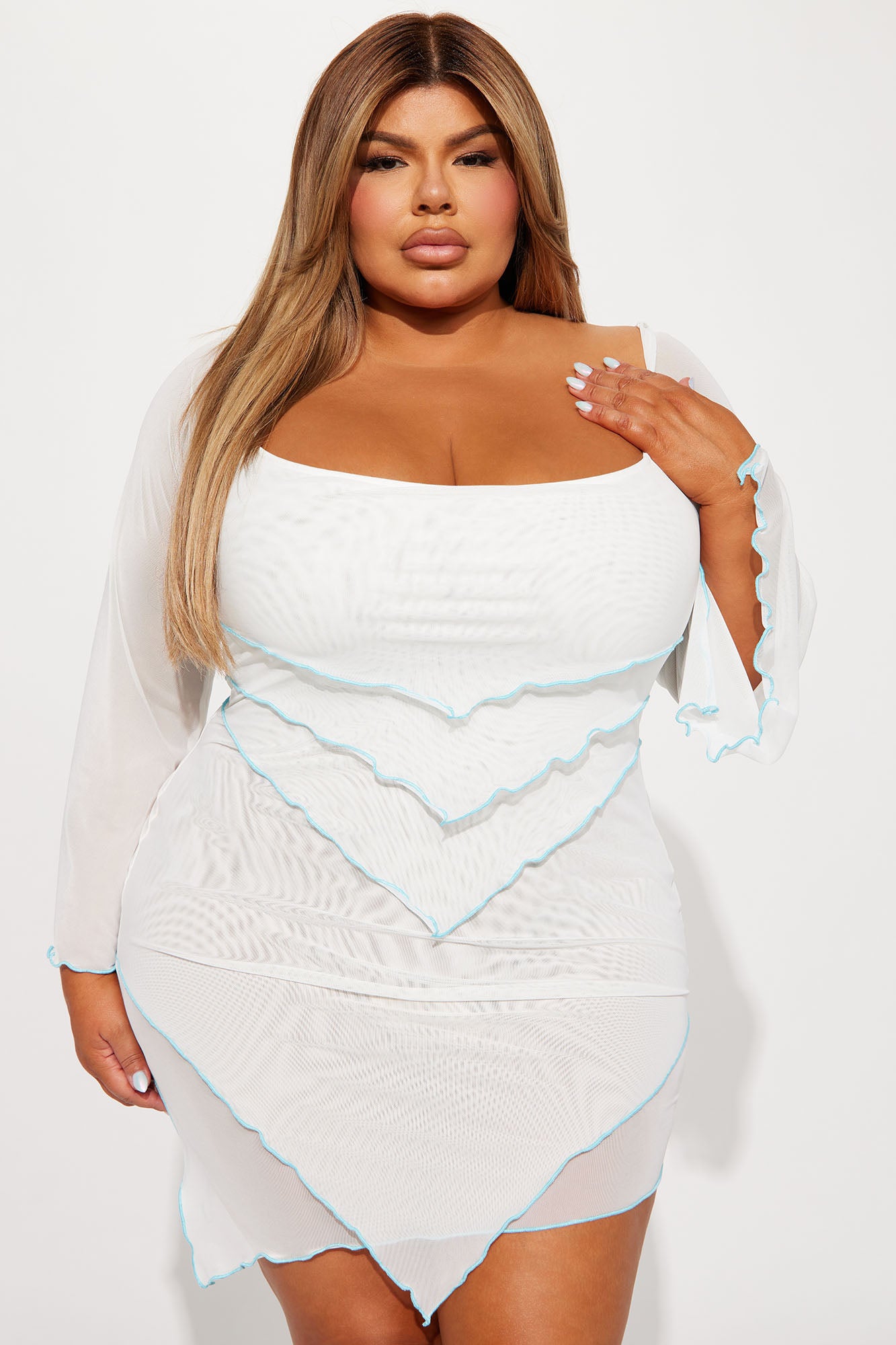 Enchanted Garden Mesh Mini Dress - White/Blue