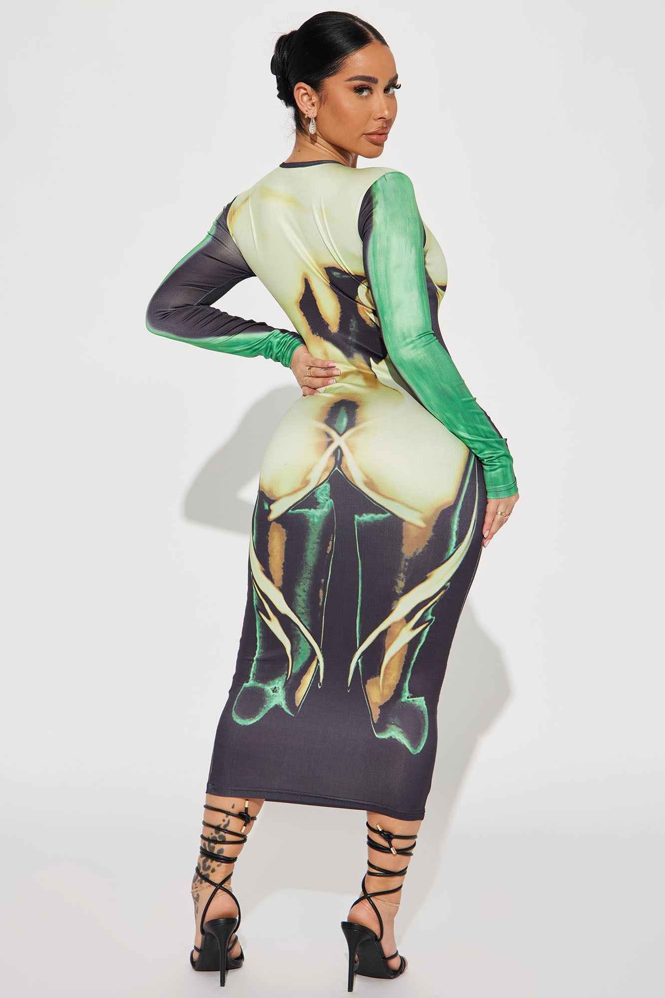 Life In Flames Midi Dress - Green/combo