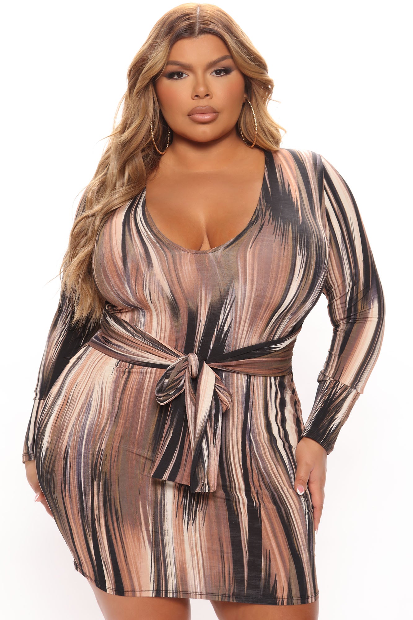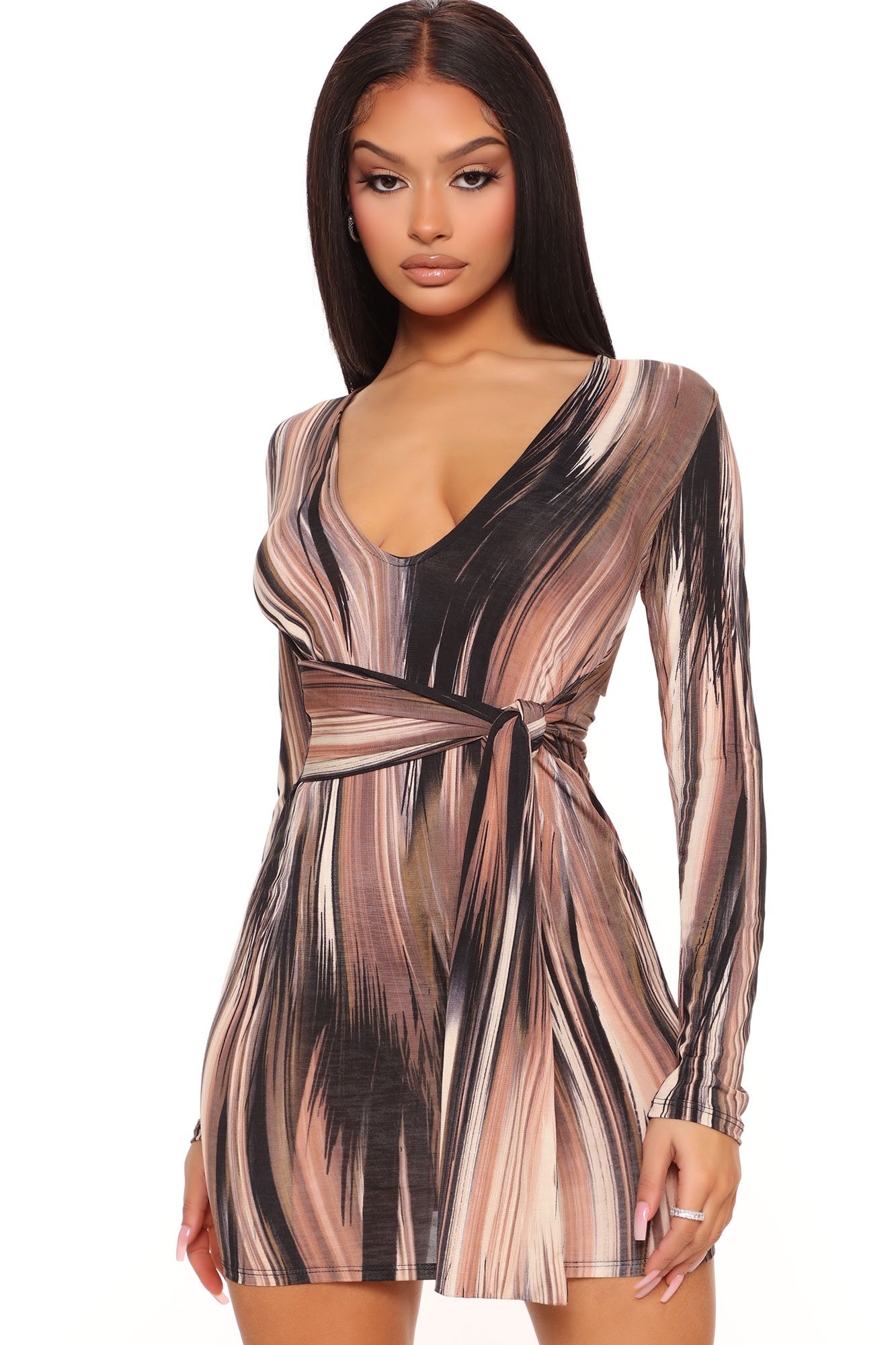 Mind Of My Own Mini Dress - Brown/combo