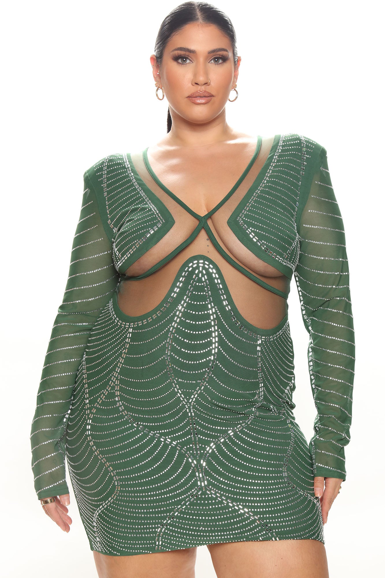 Not Your Average Girl Embellished Mini Dress - Hunter