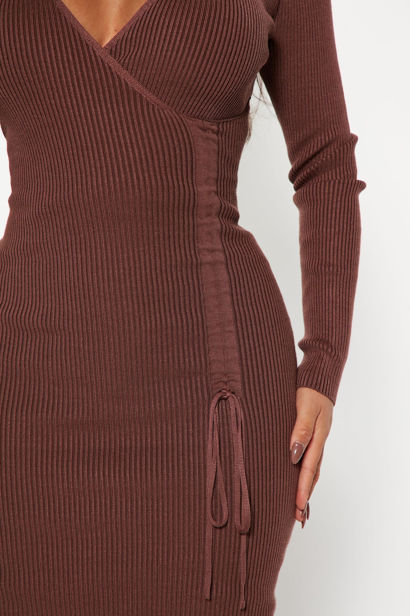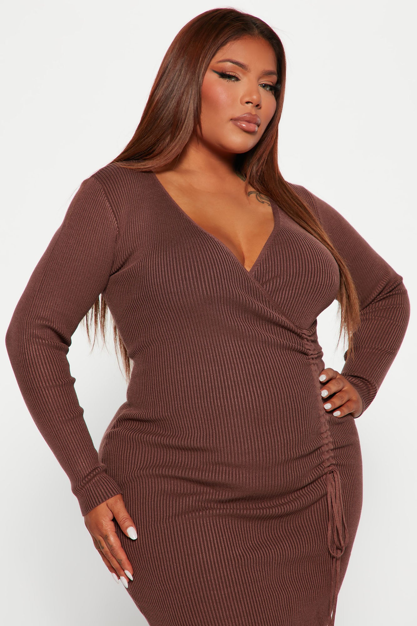 Paris In The Rain Sweater Midi Dress - Chocolate