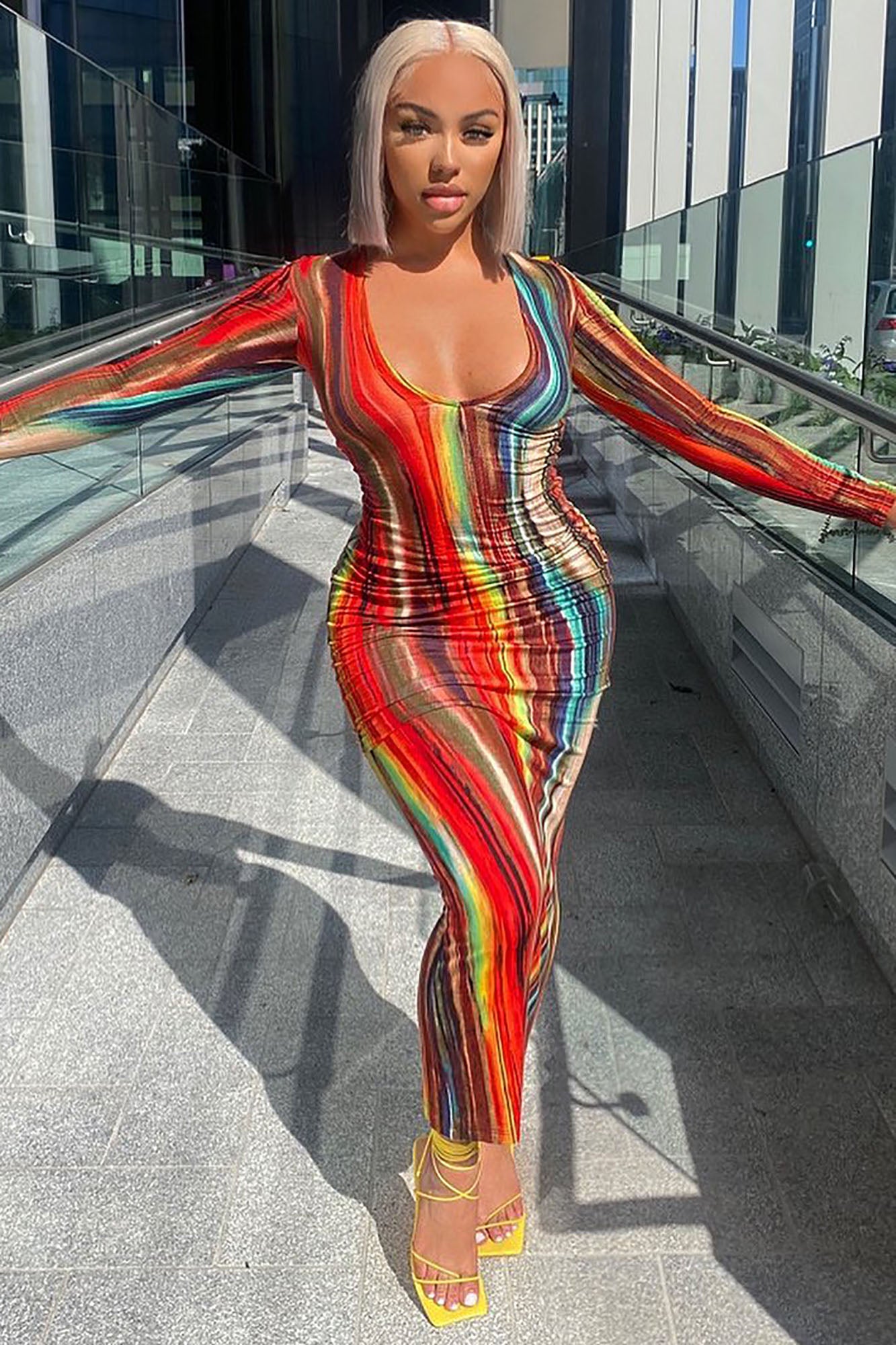 Work Of Art Long Sleeve Maxi Dress - Multi Color