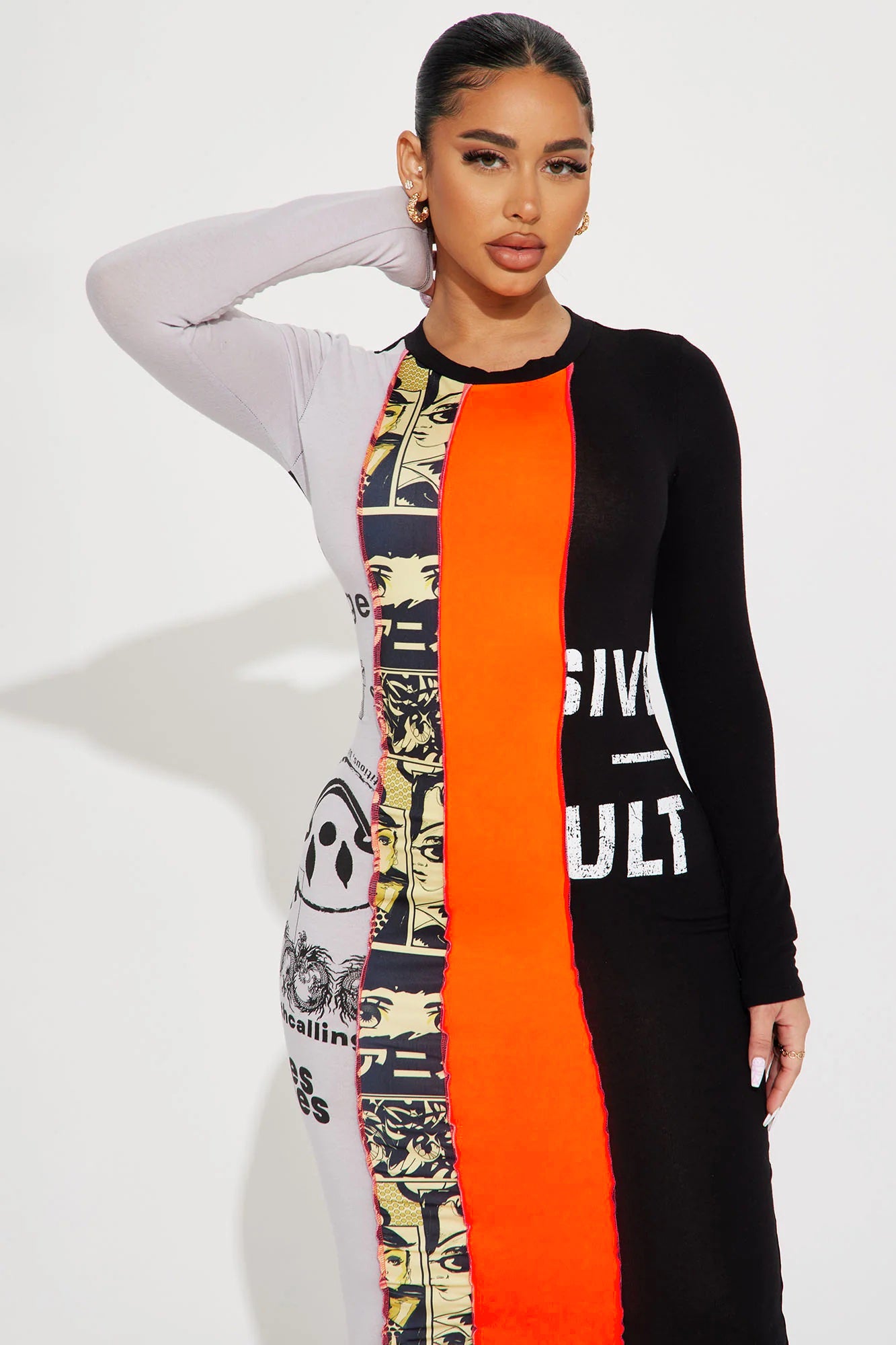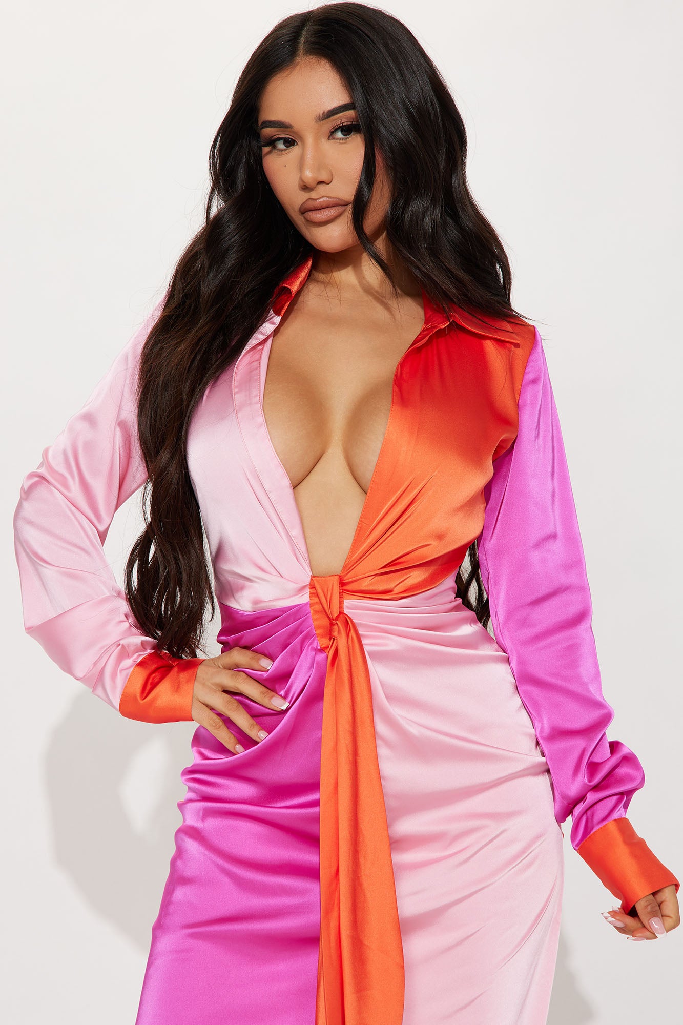 Beauty Secrets Satin Midi Dress - Pink/combo