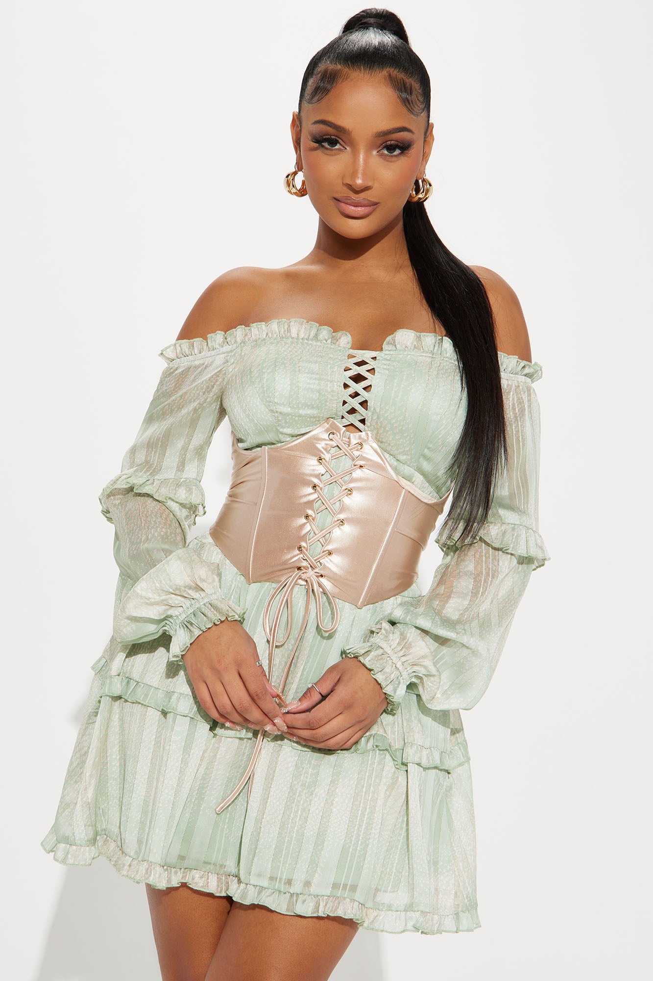 Angelic Moments Ruched Mini Dress - Brown/combo