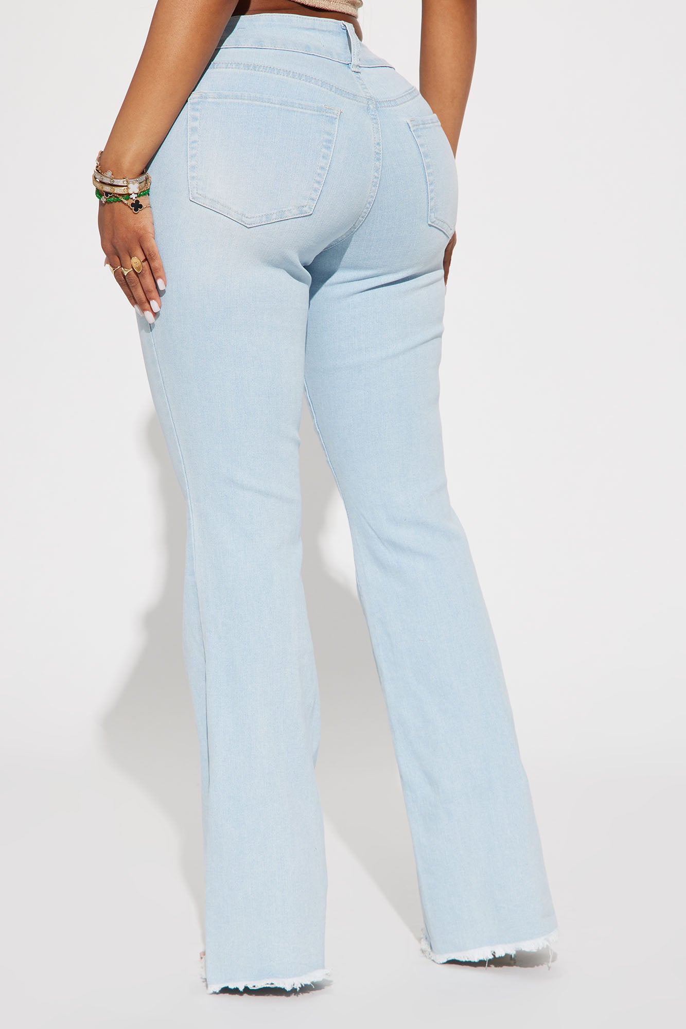 • Dolly Belted Stretch Flare Jean - Light Wash