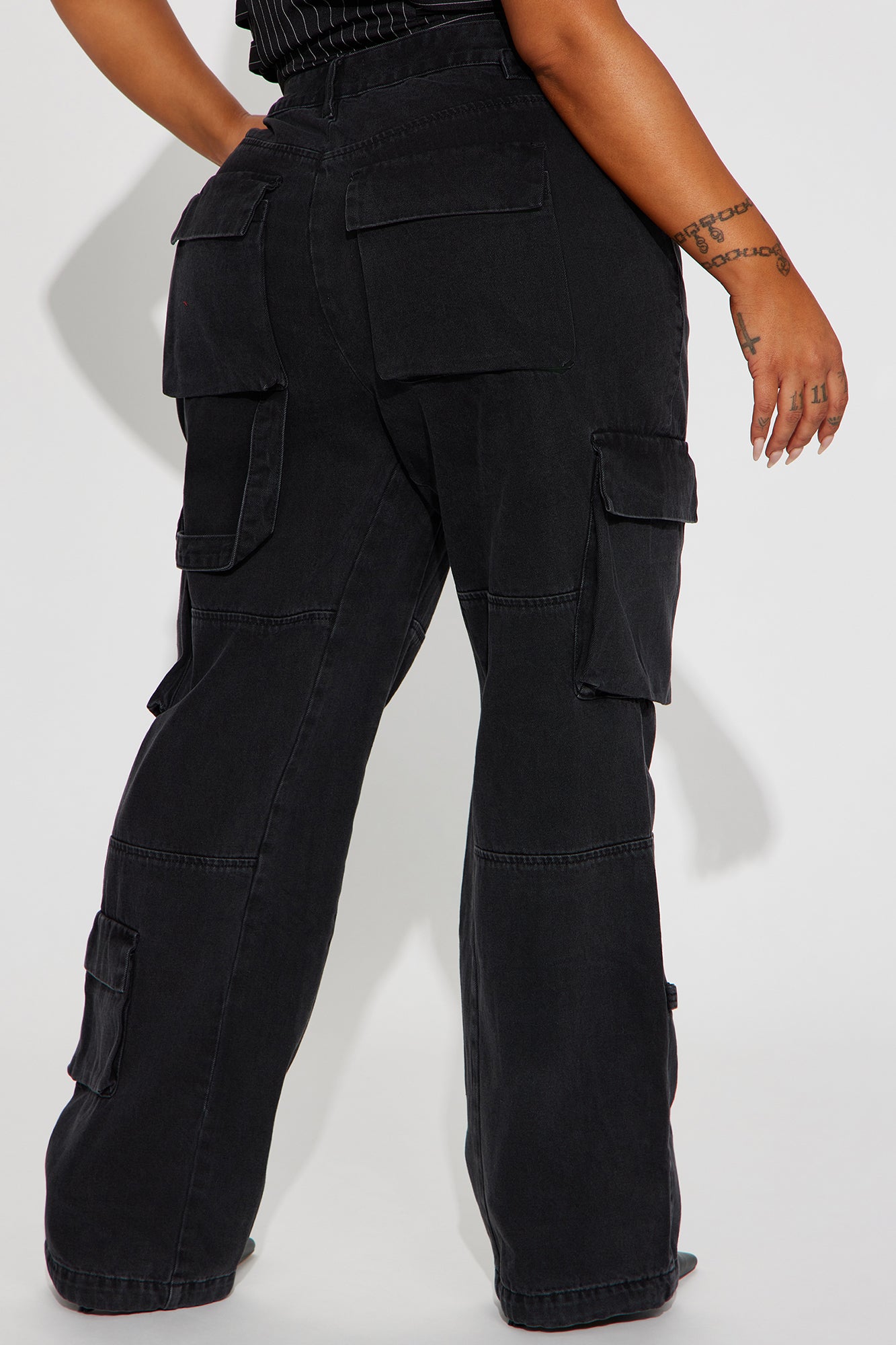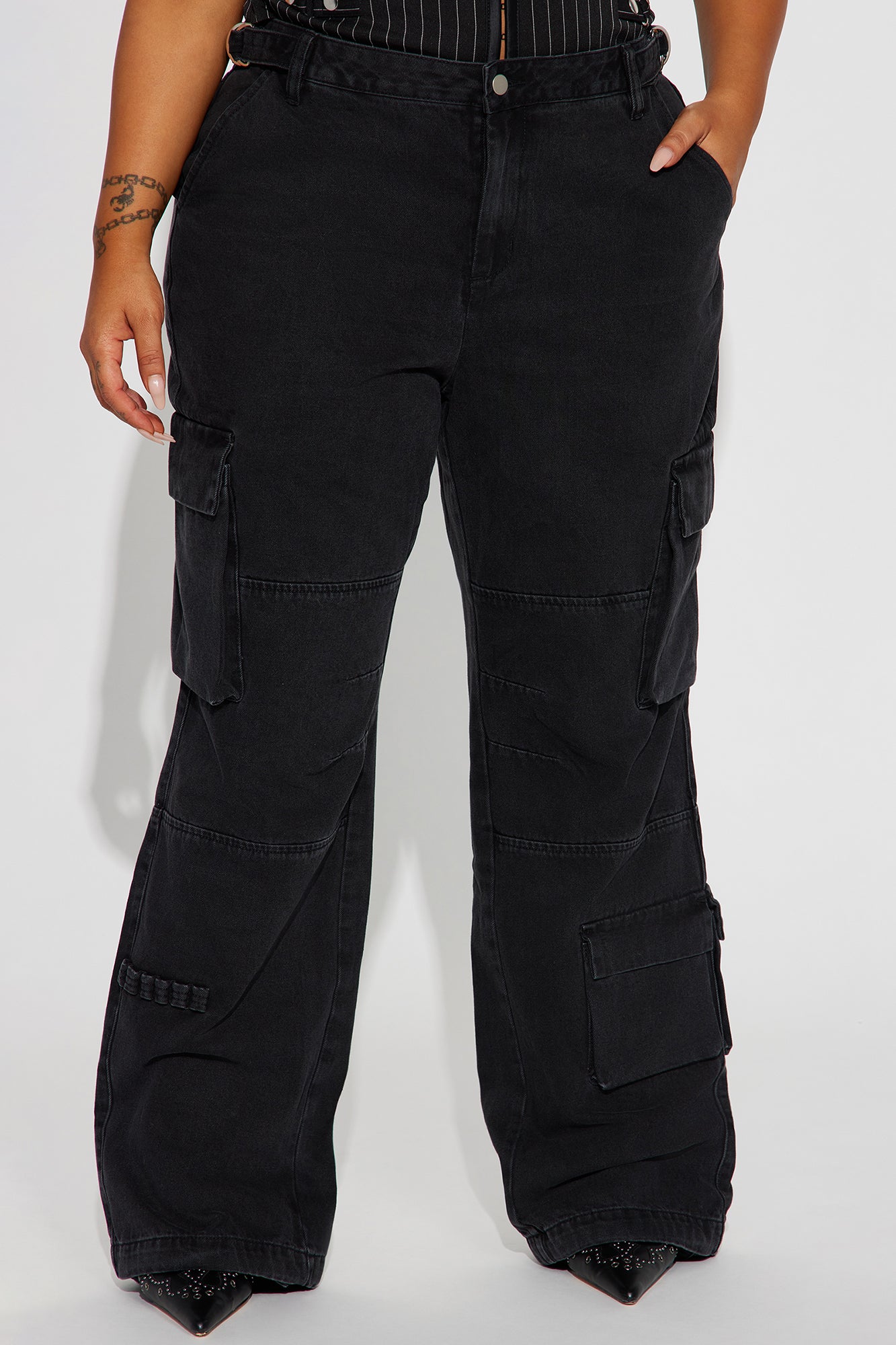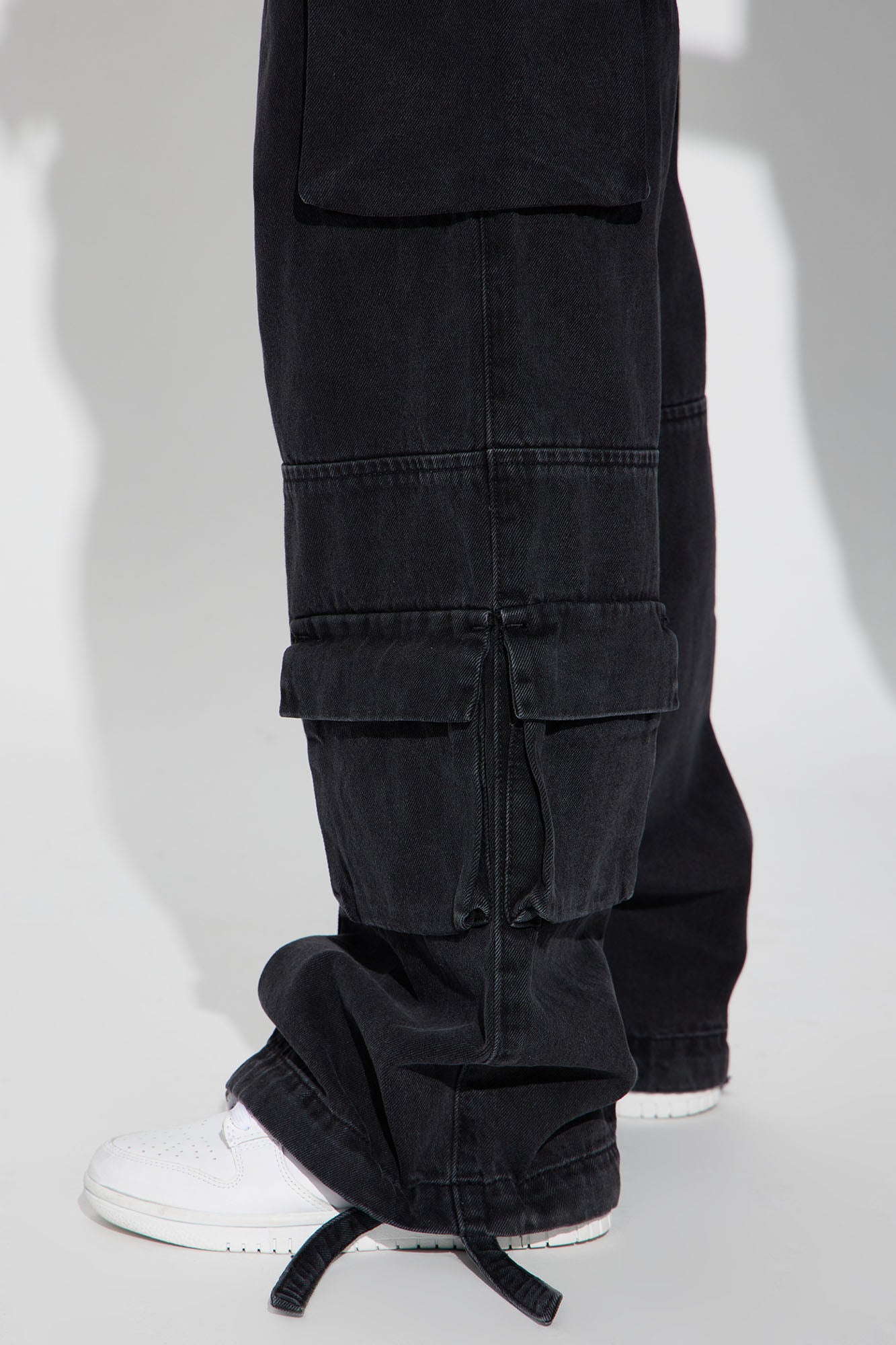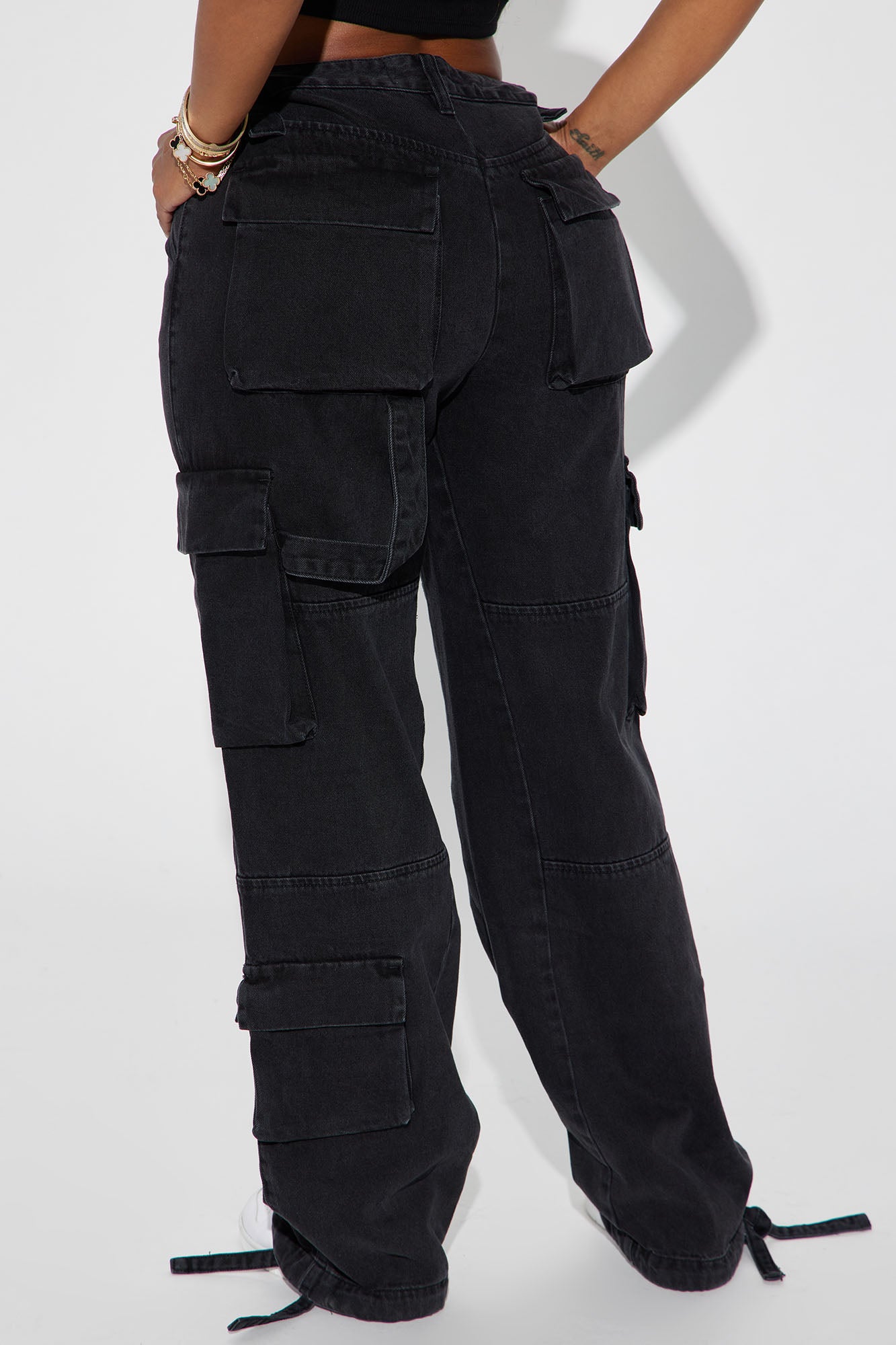 Give It Up Non Stretch Ankle Tie Cargo Jean - Black