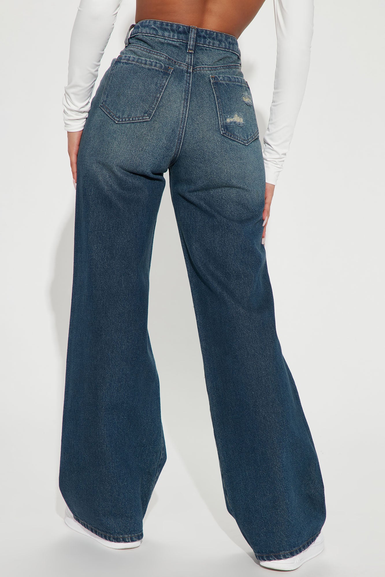 • Hit The Road Non Stretch Distressed Wide Leg Jean - Medium Wash
