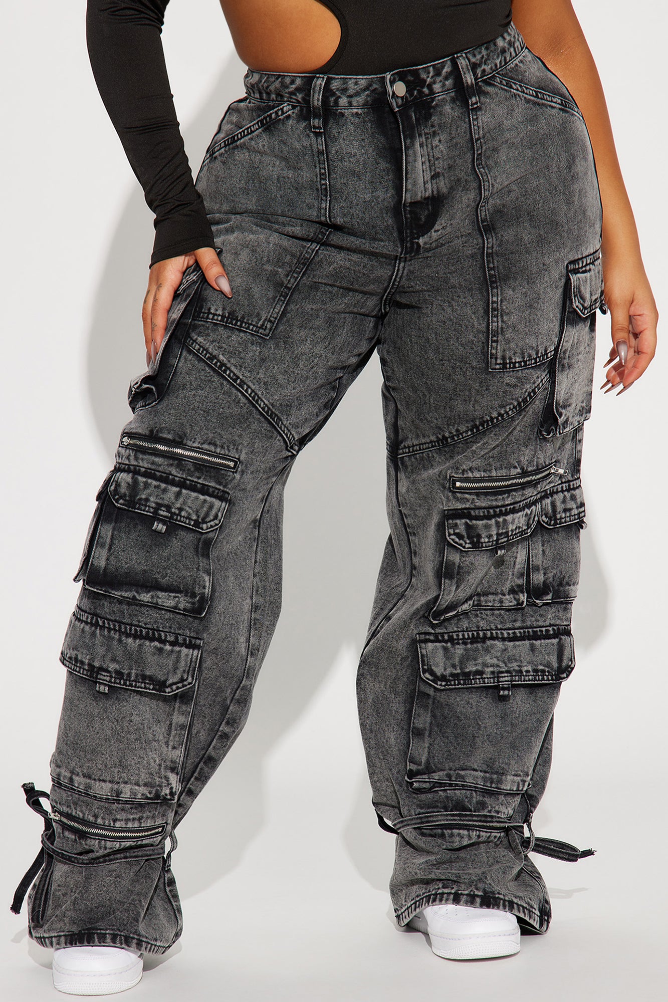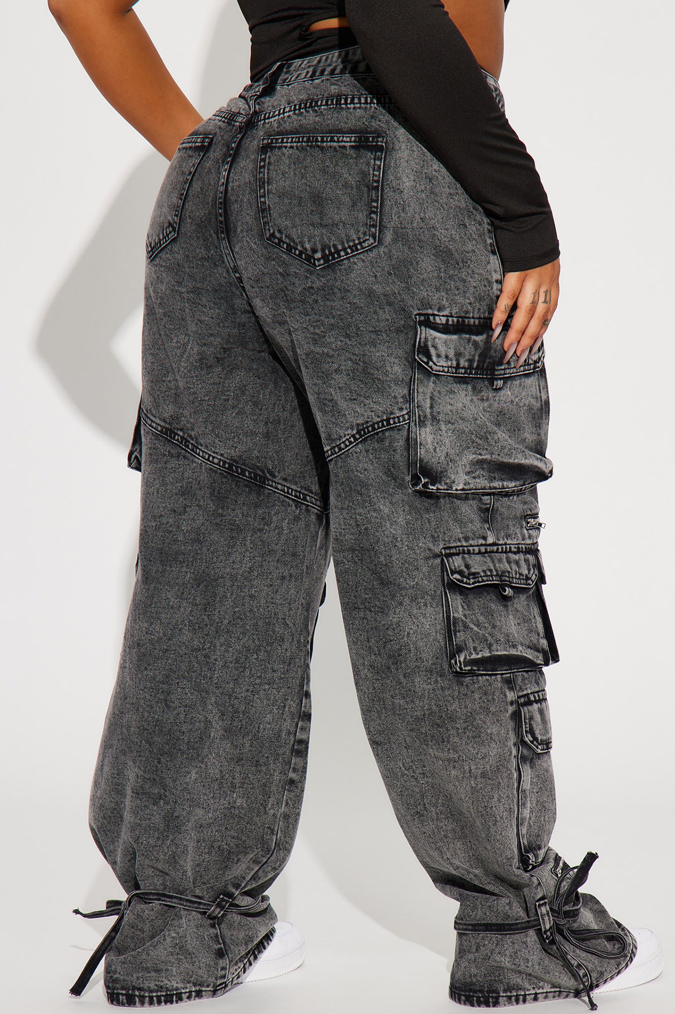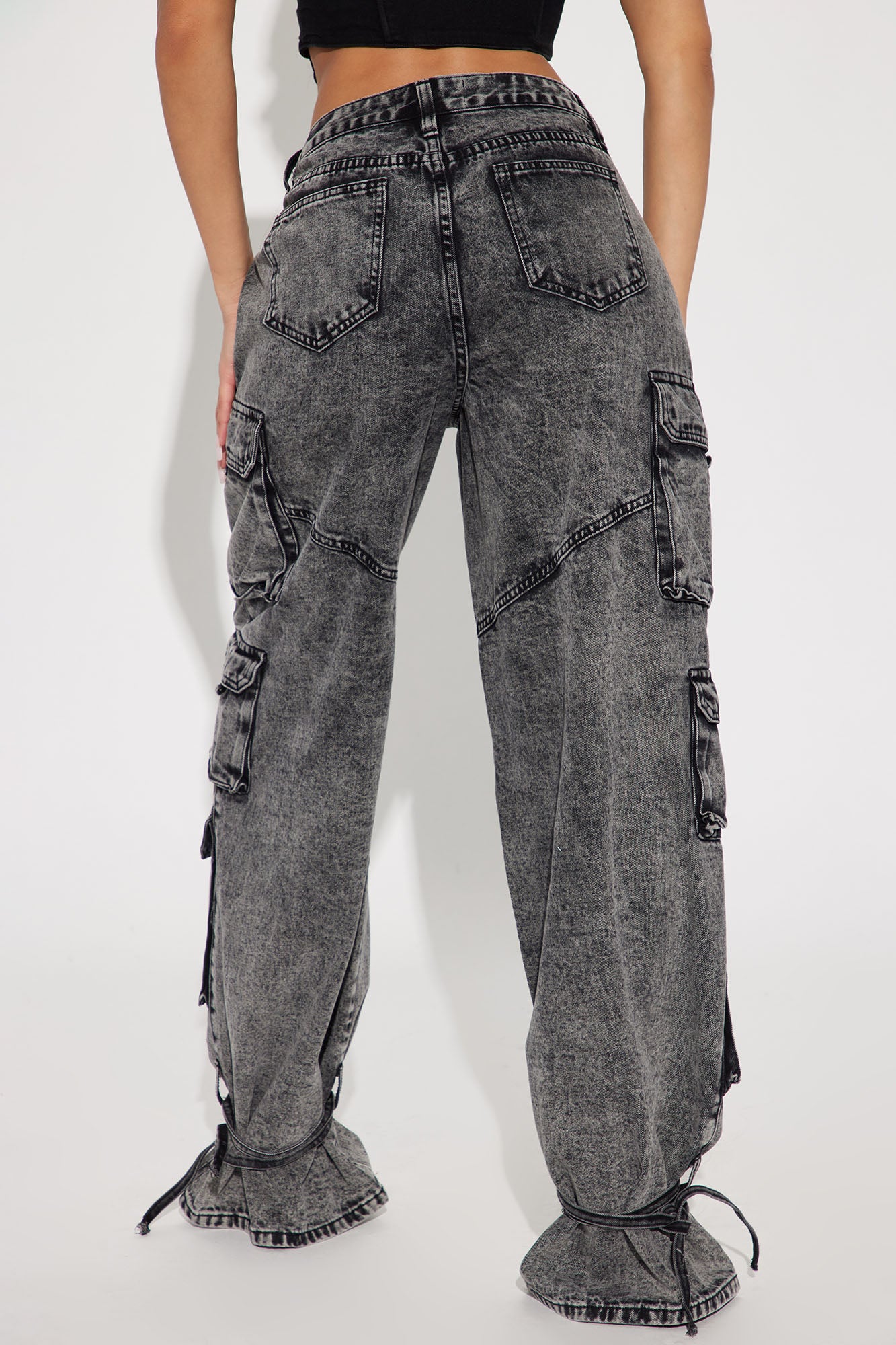 In The Mix Ankle Tie Cargo Jean - Black Wash