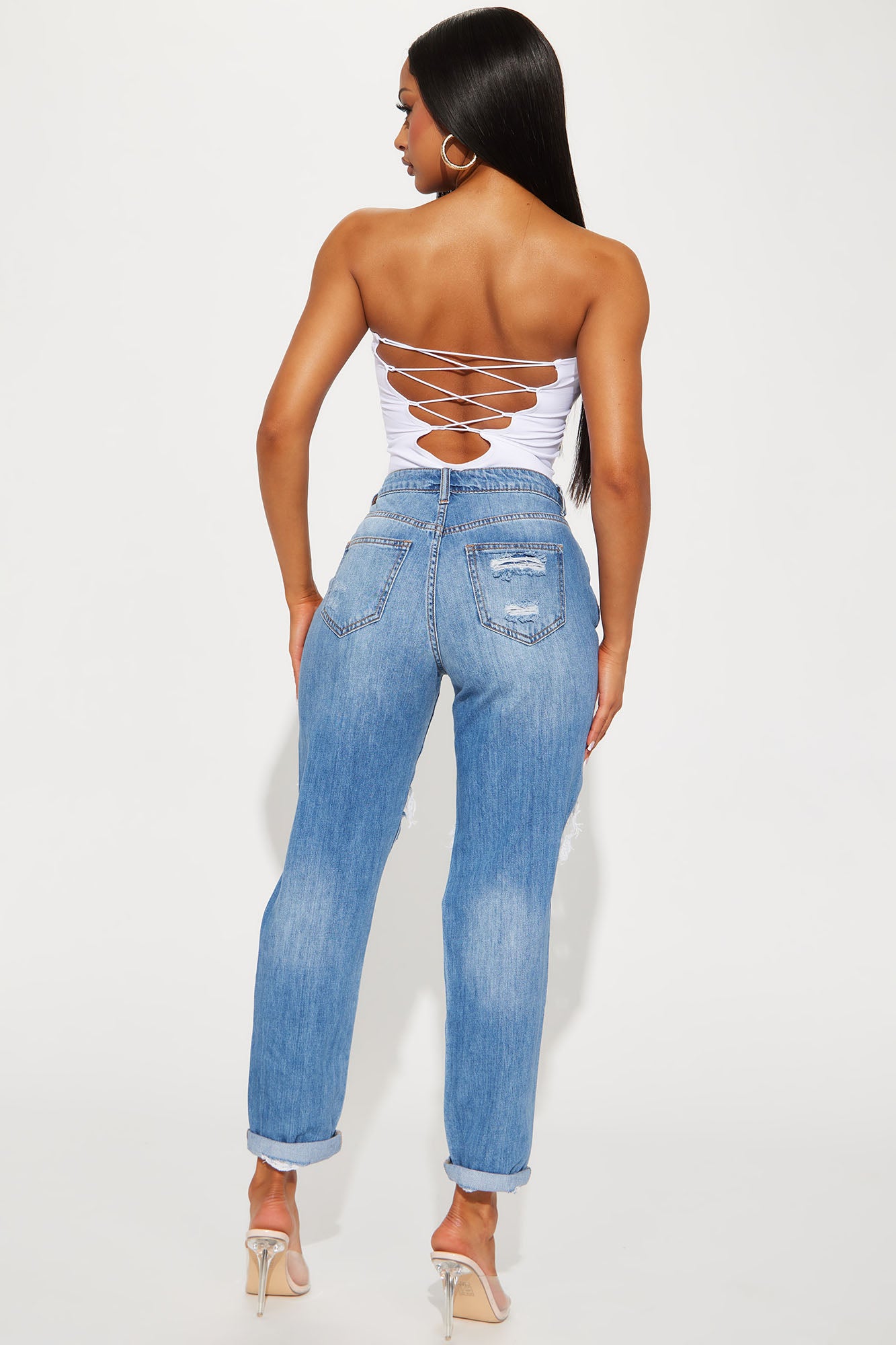 • Jax Distressed High Rise Boyfriend Jeans - Light Wash