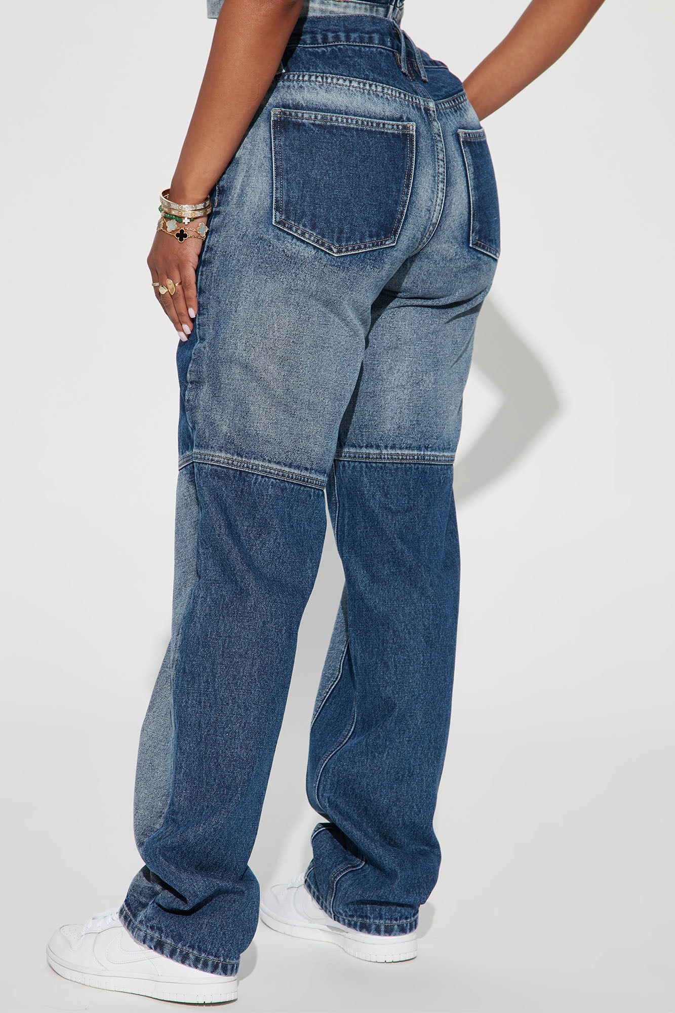 Just Your Type Two Tone Non Stretch Straight Leg Jean - Medium Wash