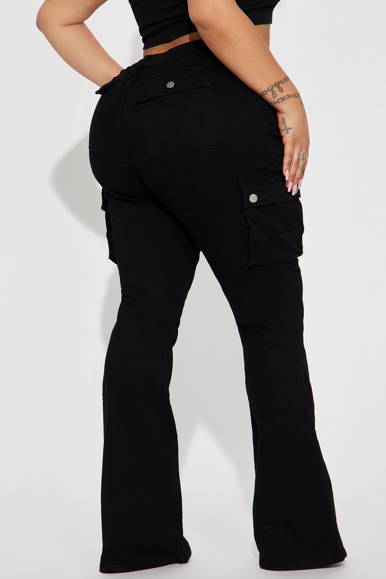 • Late Nights Mid Rise Cargo Flare Jeans - Black