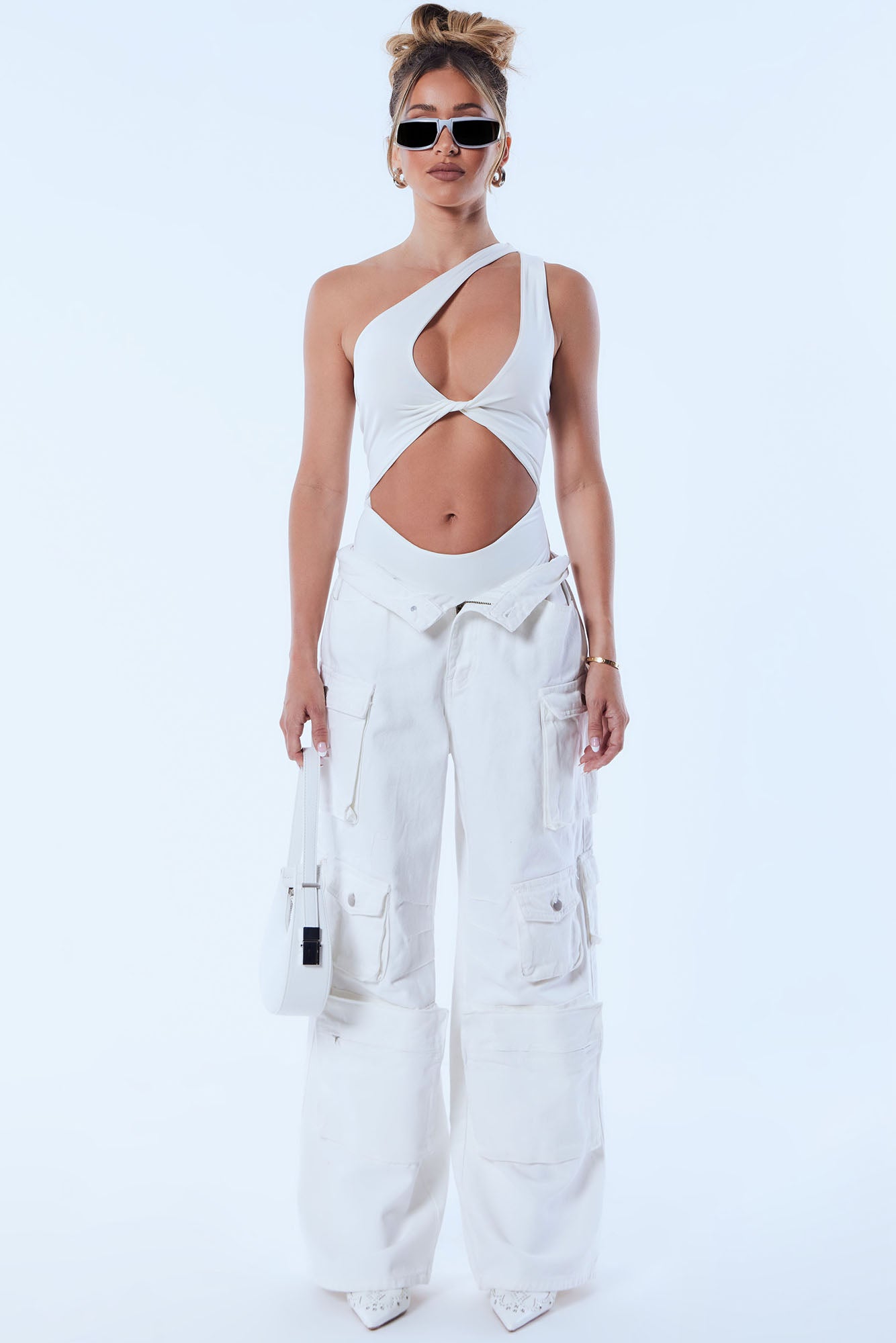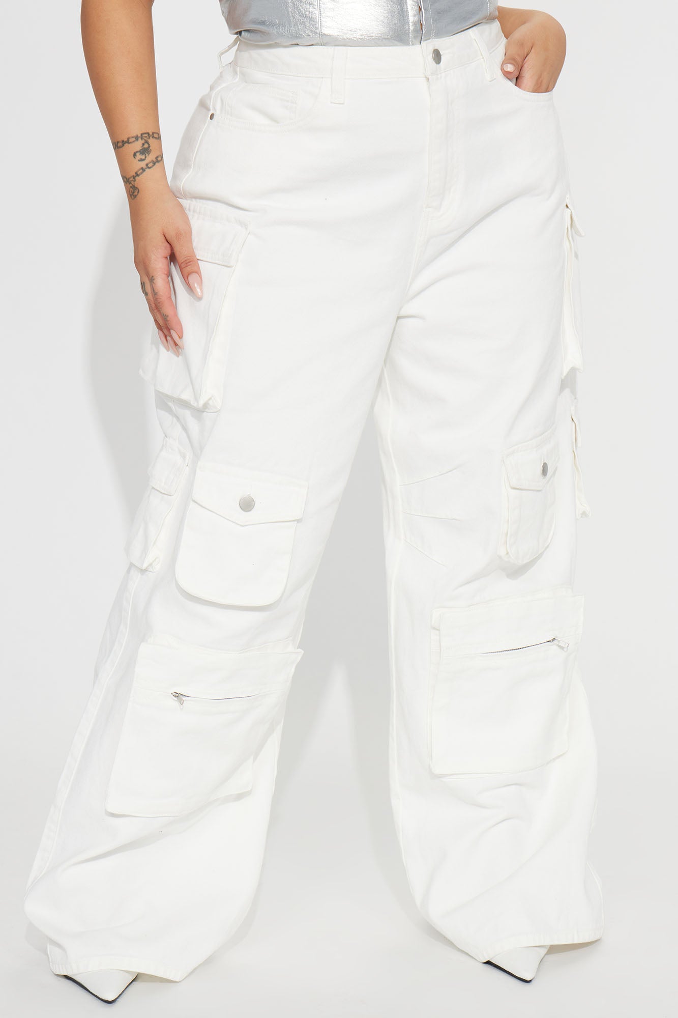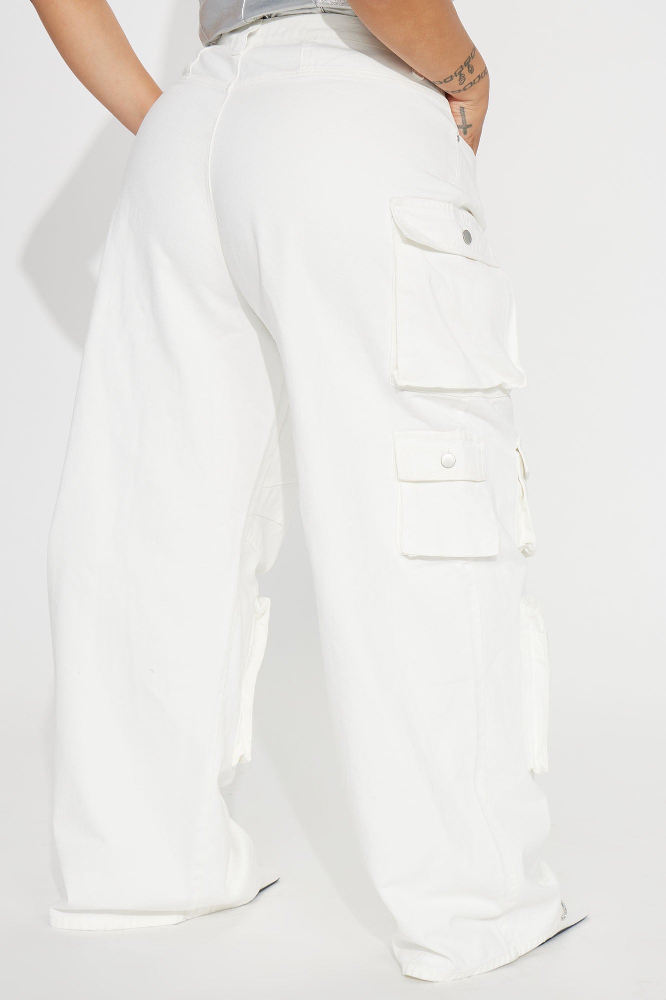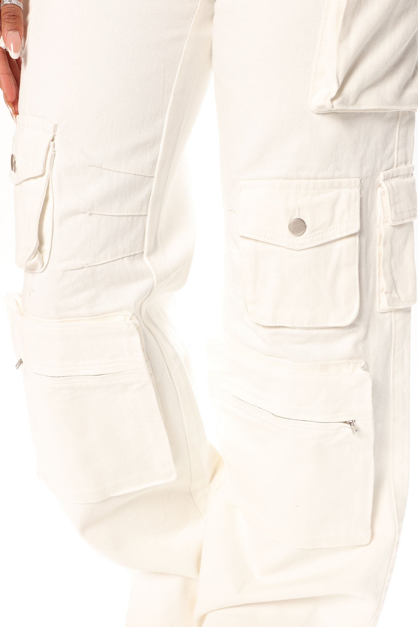 Lily High Rise Cargo Jeans - White