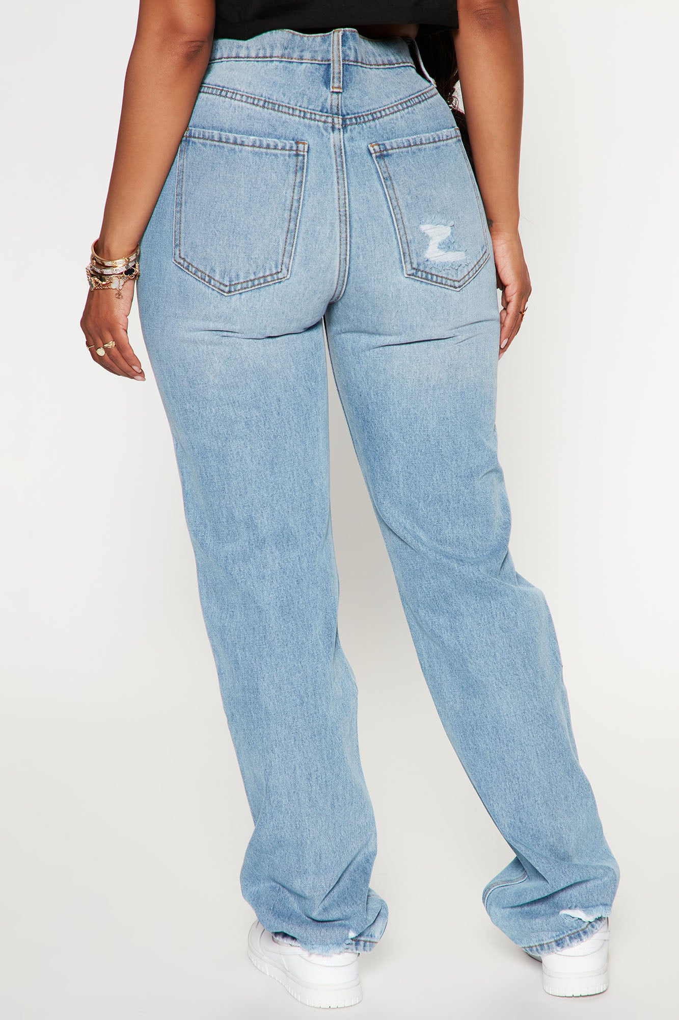 Most Wanted Shredded Straight Leg Jeans - Light Blue Wash