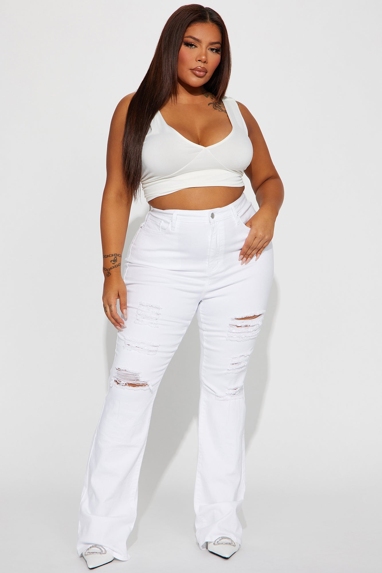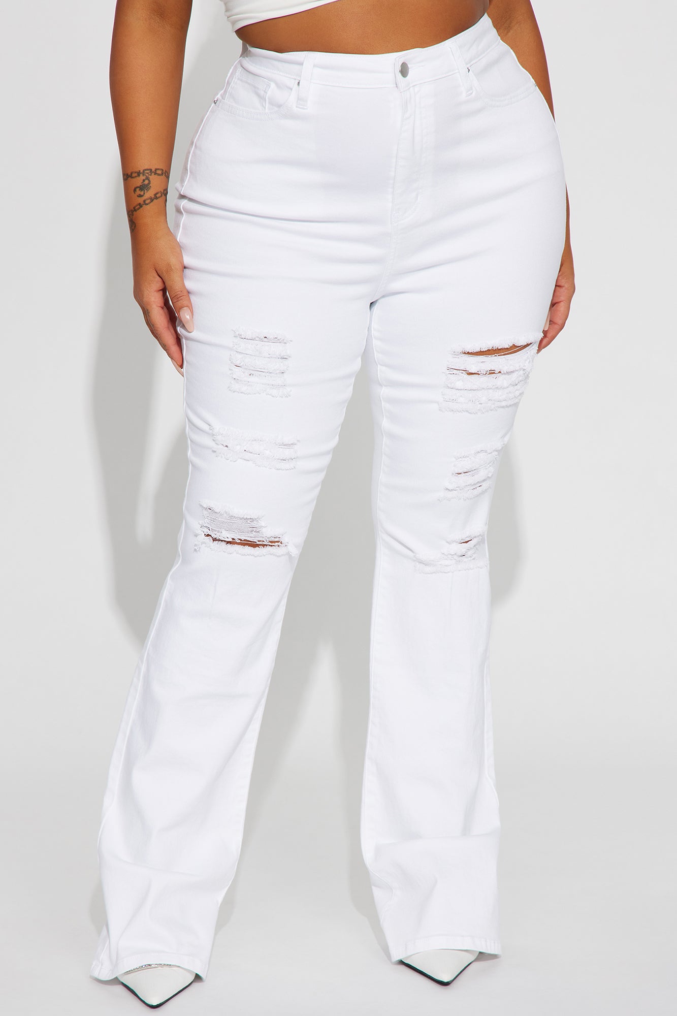 • Summer Honey Ripped Stretch Bootcut Jeans - White