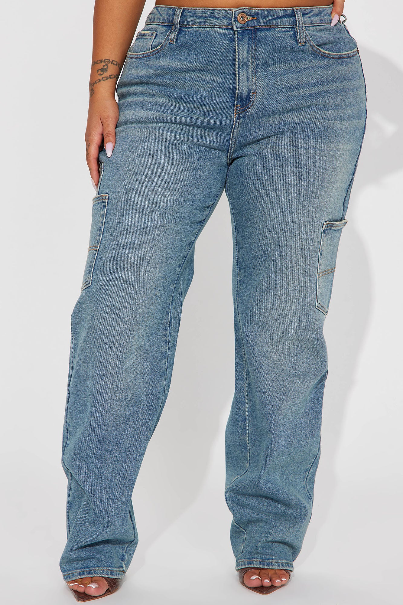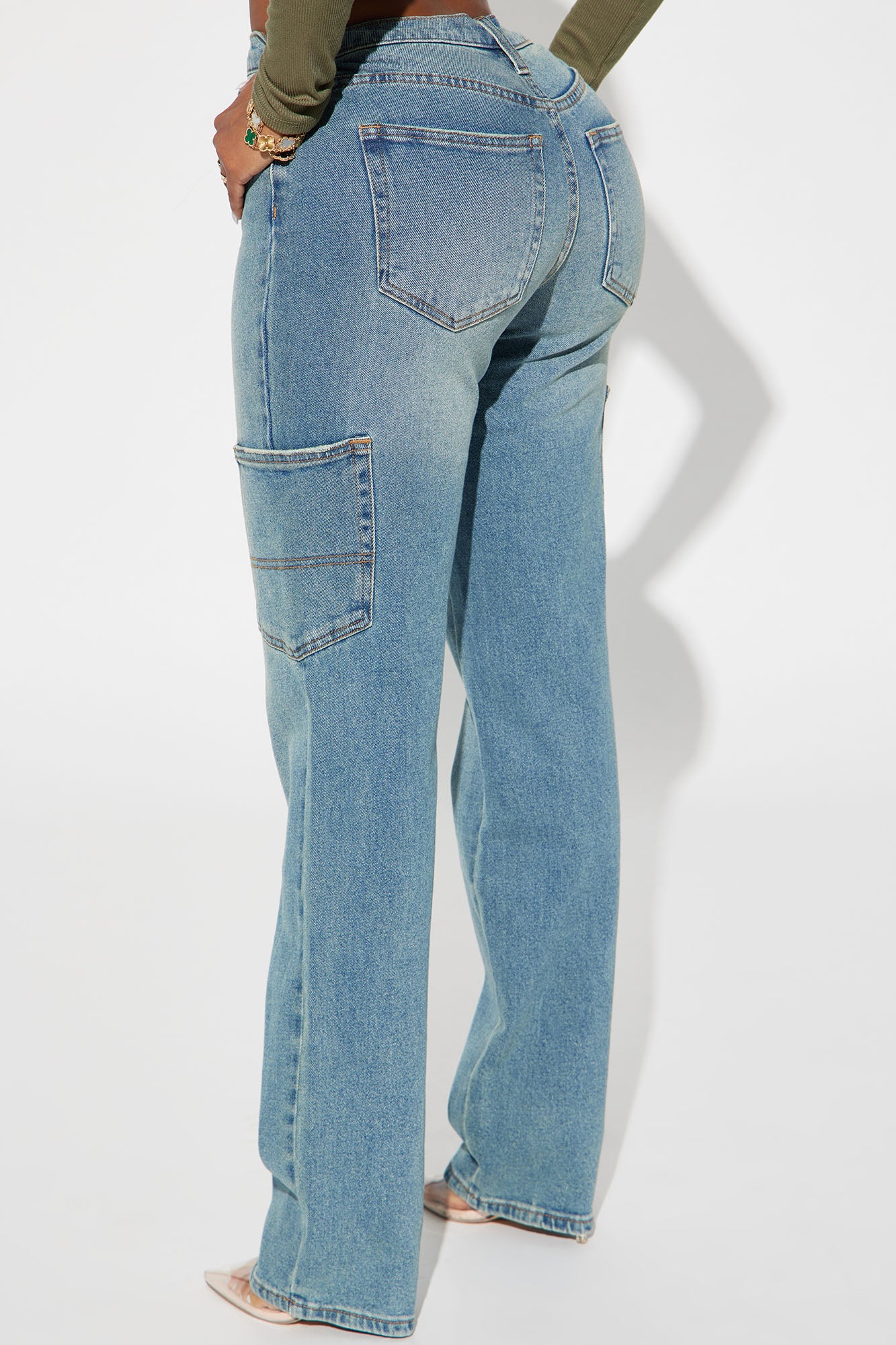Swear By It Straight Leg Utility Jeans - Medium Wash