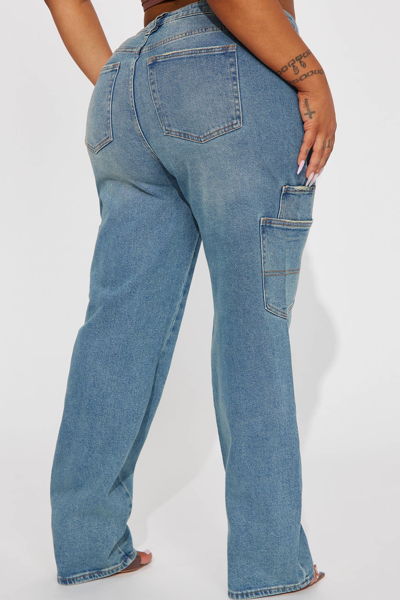 • Swear By It Straight Leg Utility Jeans - Medium Wash