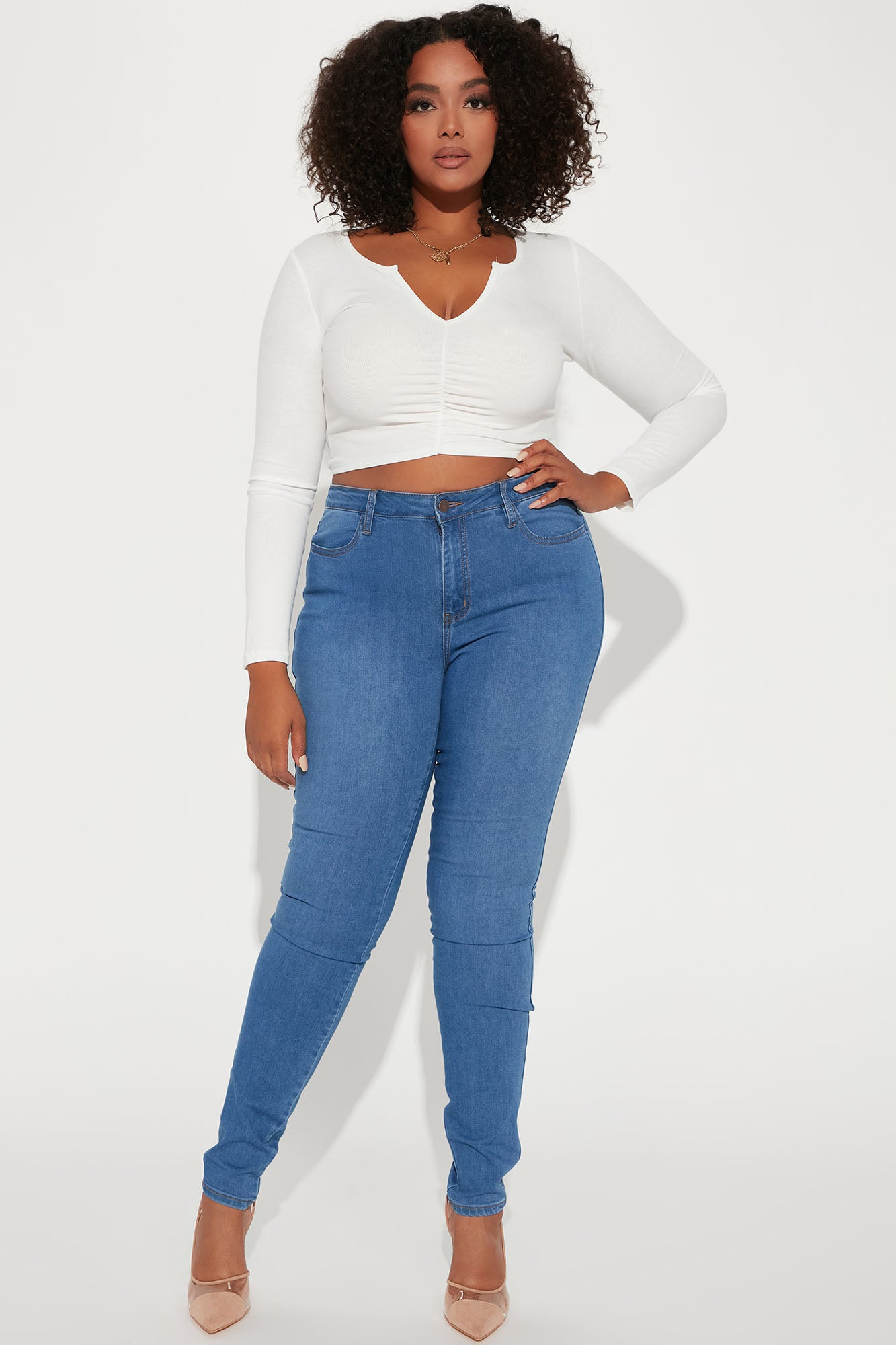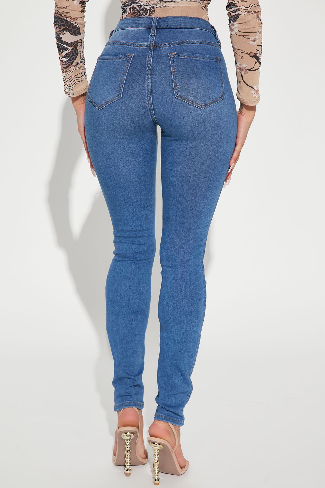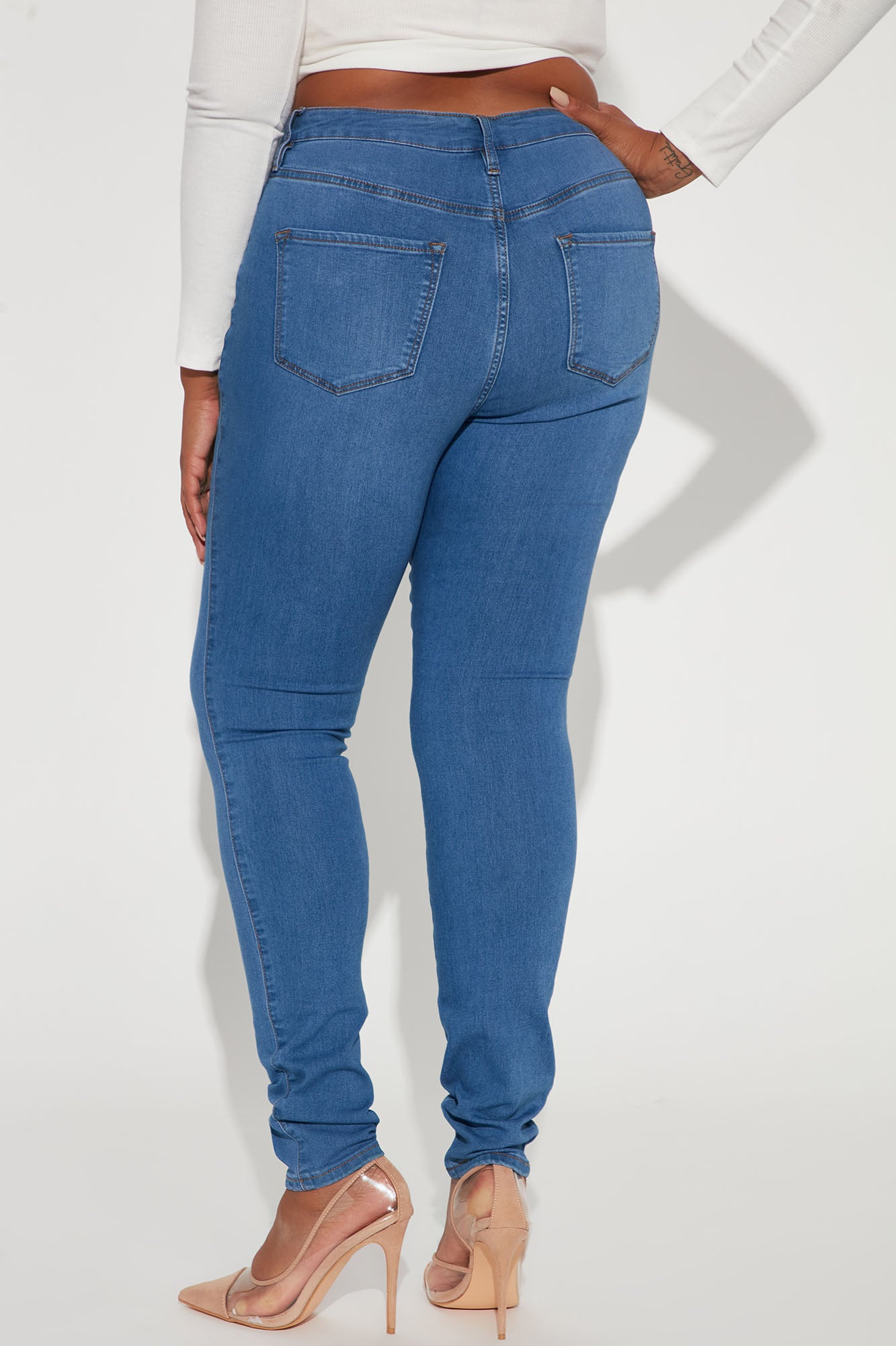 Mid-rise to the occasion! Transition seamlessly from day to night in our Medium Blue Classic Mid-Rise Skinny Jeans. Featuring a four-pocket design and mid-rise, skinny cut, this is a pair of denim you won't know how you ever lived without.