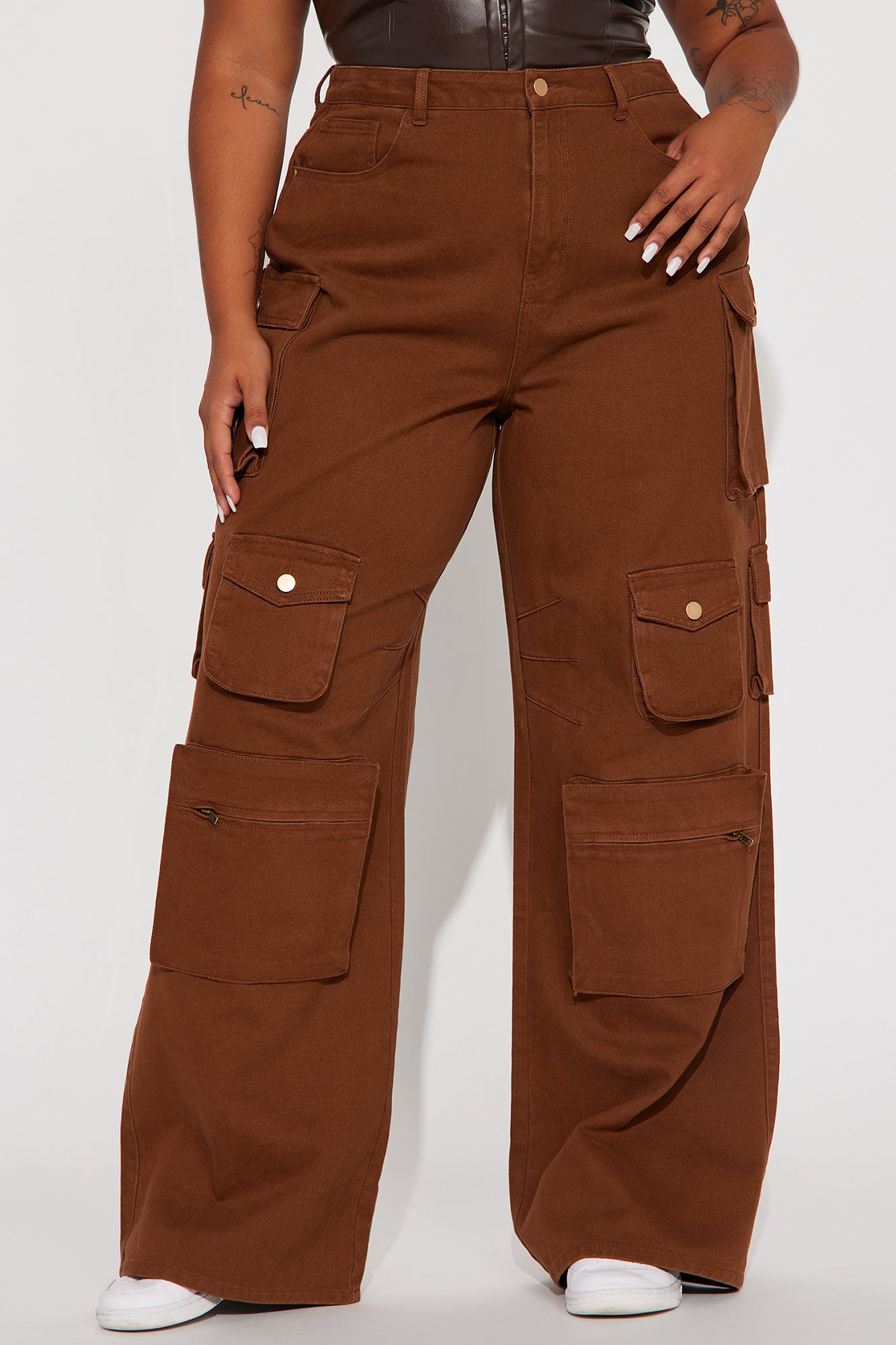 Tall Lily High Rise Cargo Jeans - Brown