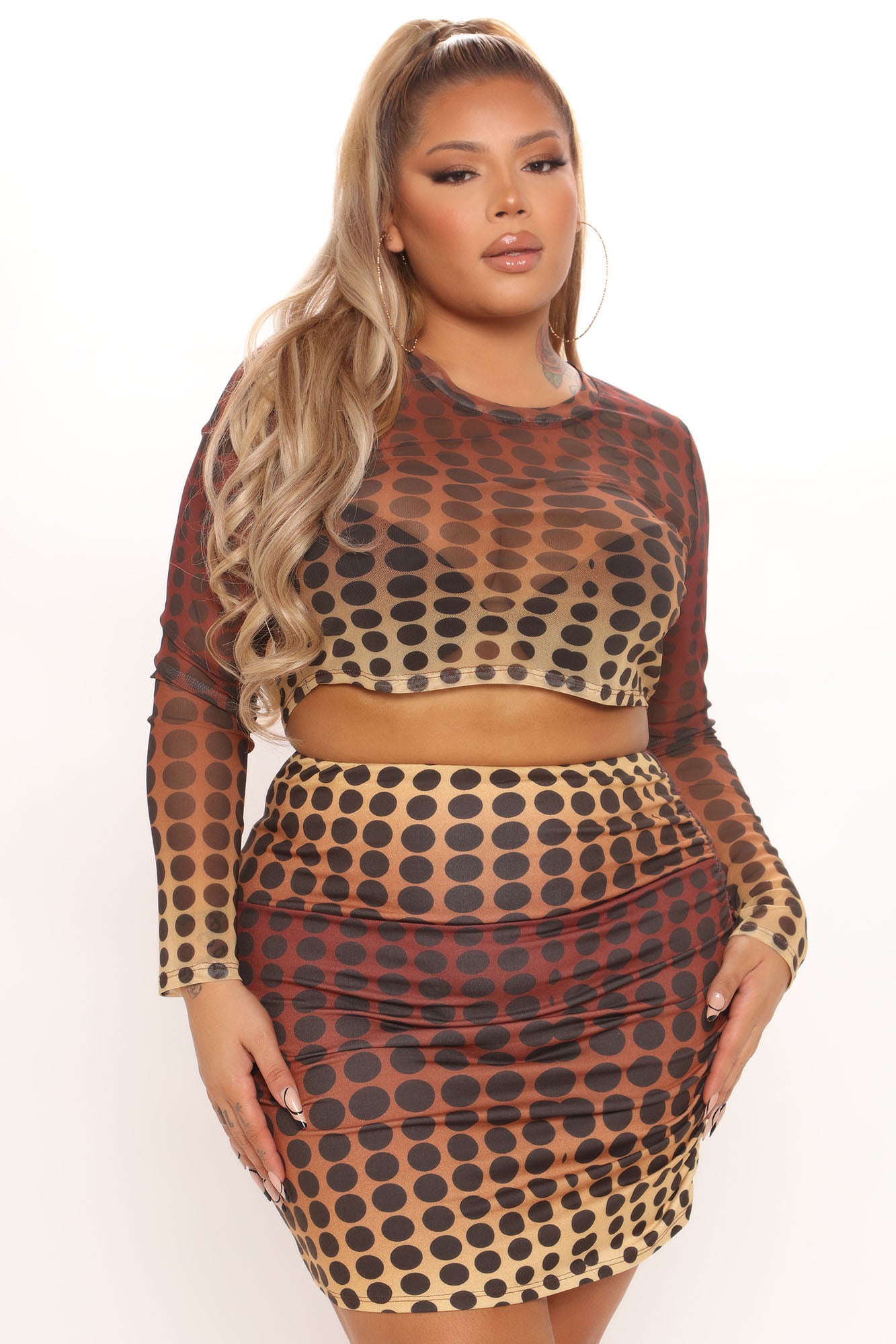 Brielle Polka Dot Mini Skirt Set - Brown/combo