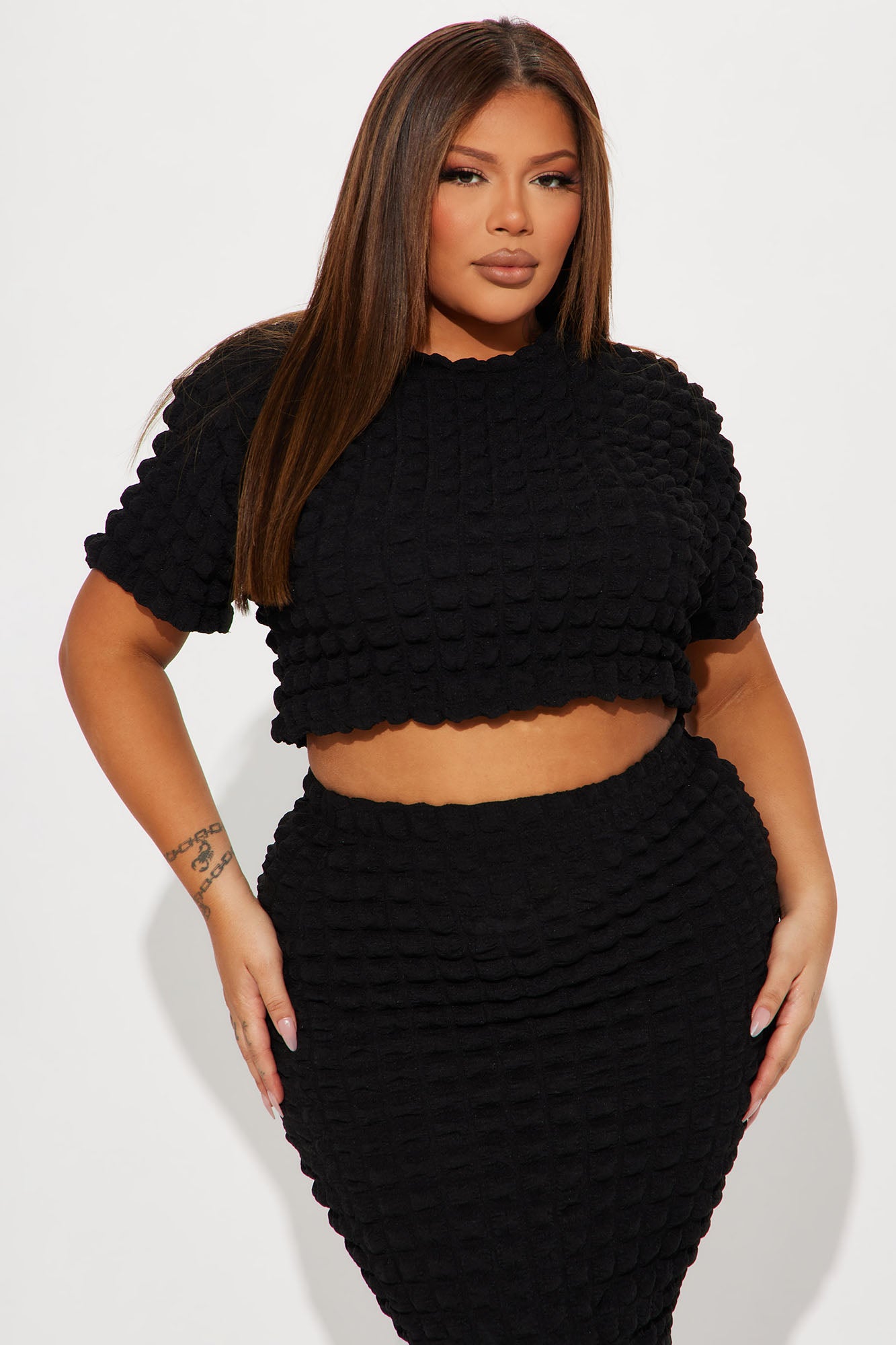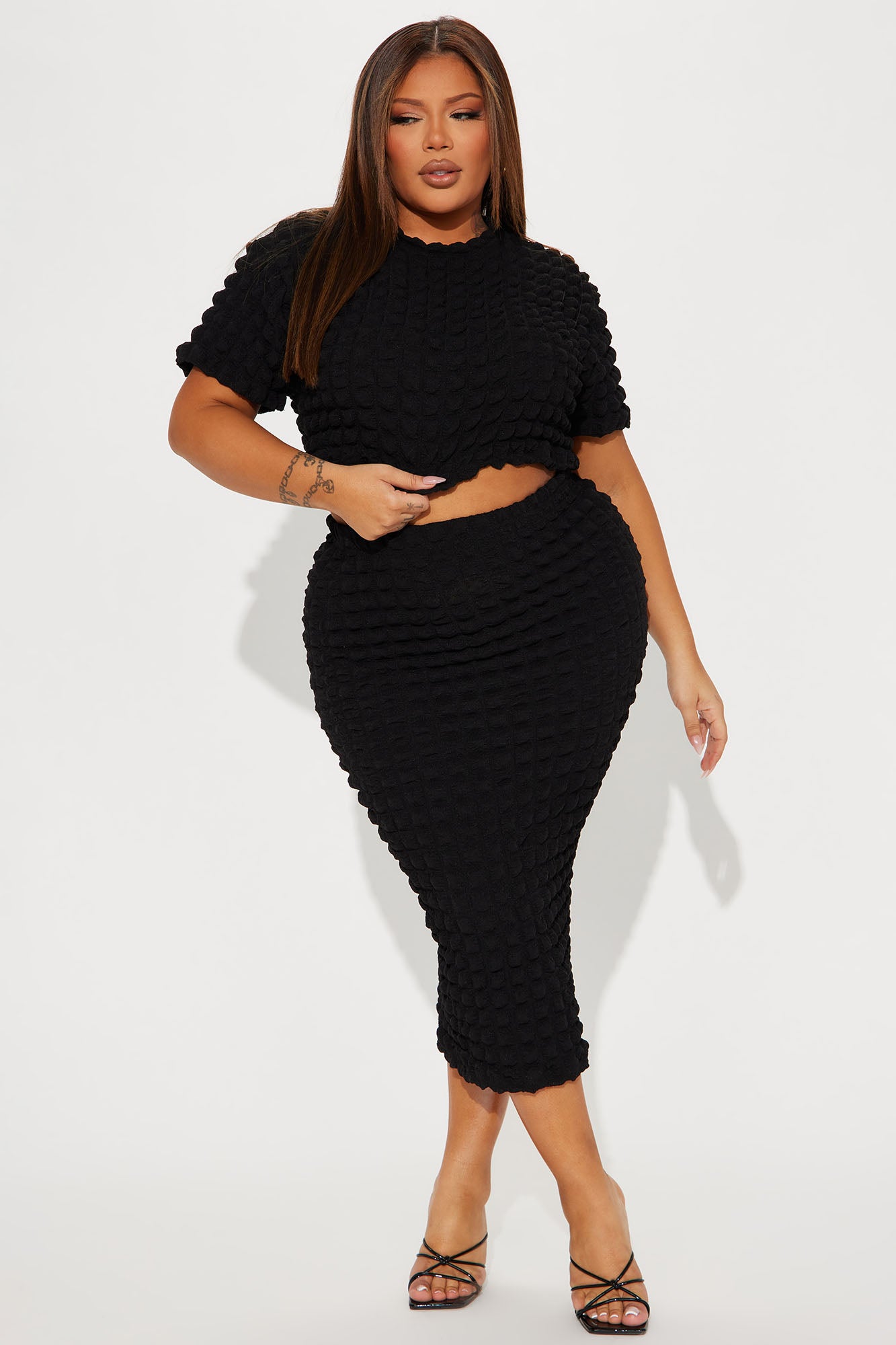 Feelin Good Textured Skirt Set - Black