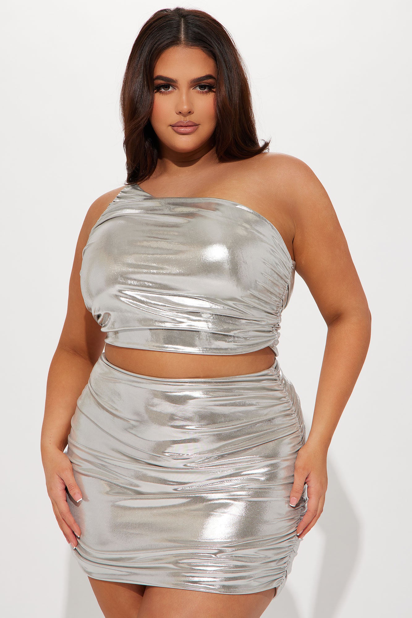 • Metallic Ruched Skirt Set