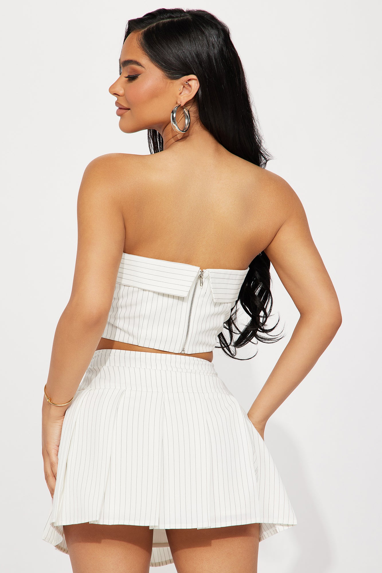 Paola Pinstripe Skirt Set - White